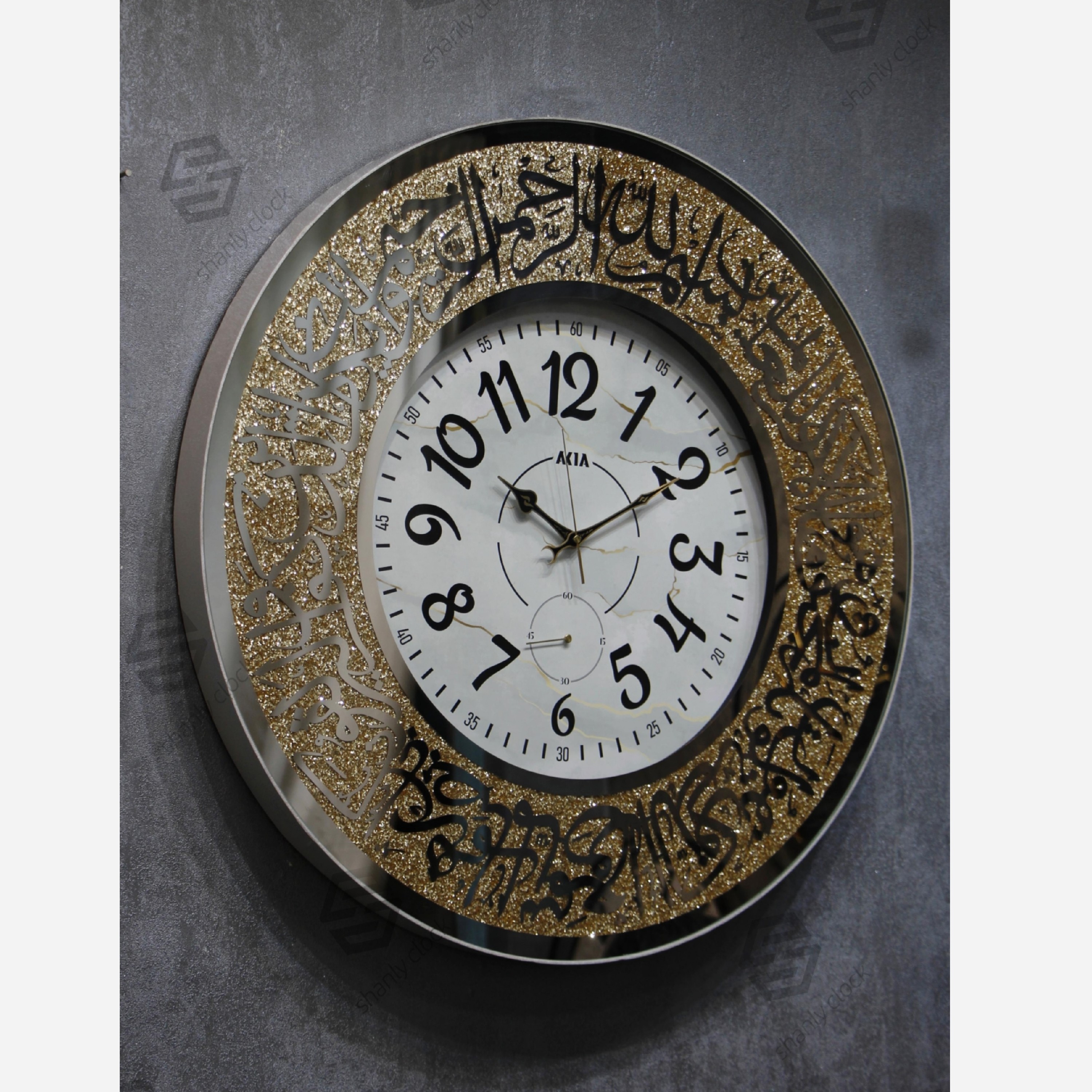 ساعت دیواری آینه ای ون یکاد بزرگ سفید طلایی مبلمونسرا مدل 238230