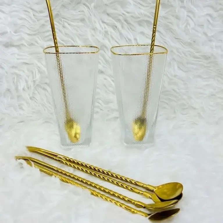 قاشق نی دار طلایی بهمراه فرچه نظافت بسته 6عددی مبلمونسرا مدل 275072