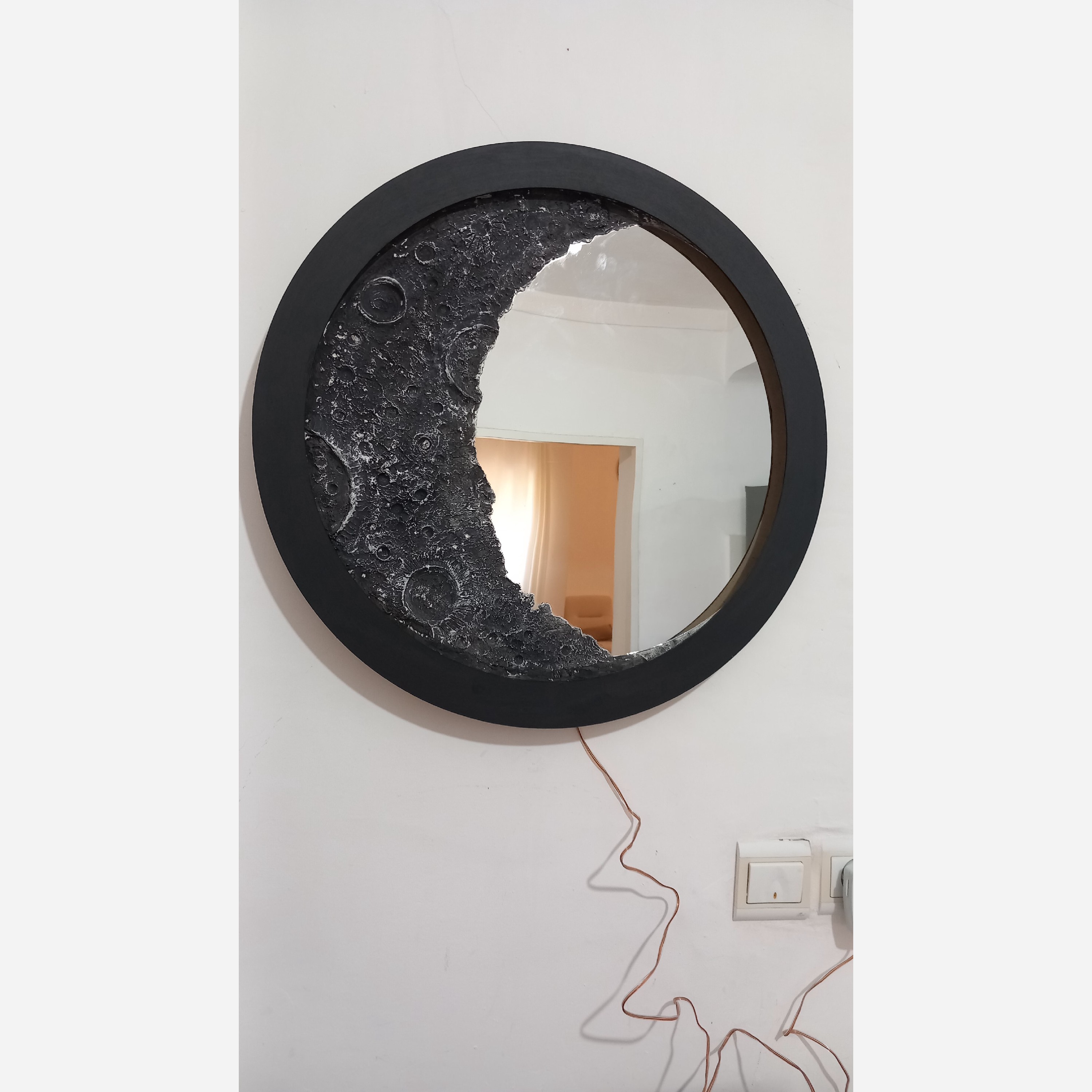 تابلو شیک و کاربردی هلال ماه درکنار آینه کار شده بسیار شیک و طرحی خاص شده. قابل سفارش در ابعاد مختلف. این کار سایز 57سانت . اگه خواستید این کار چون آینه از دور نگاه خودتون میکنید صورتتون کشید نشون میده ولی از نزدیک اوکیه یه تخفیف ویژه میدم بهتون فقط روی اینکار.بقبه سایز ها سفارش بدین آینه با کیفیت بالا اجرا میشه فقط این یکی مورد داشته.