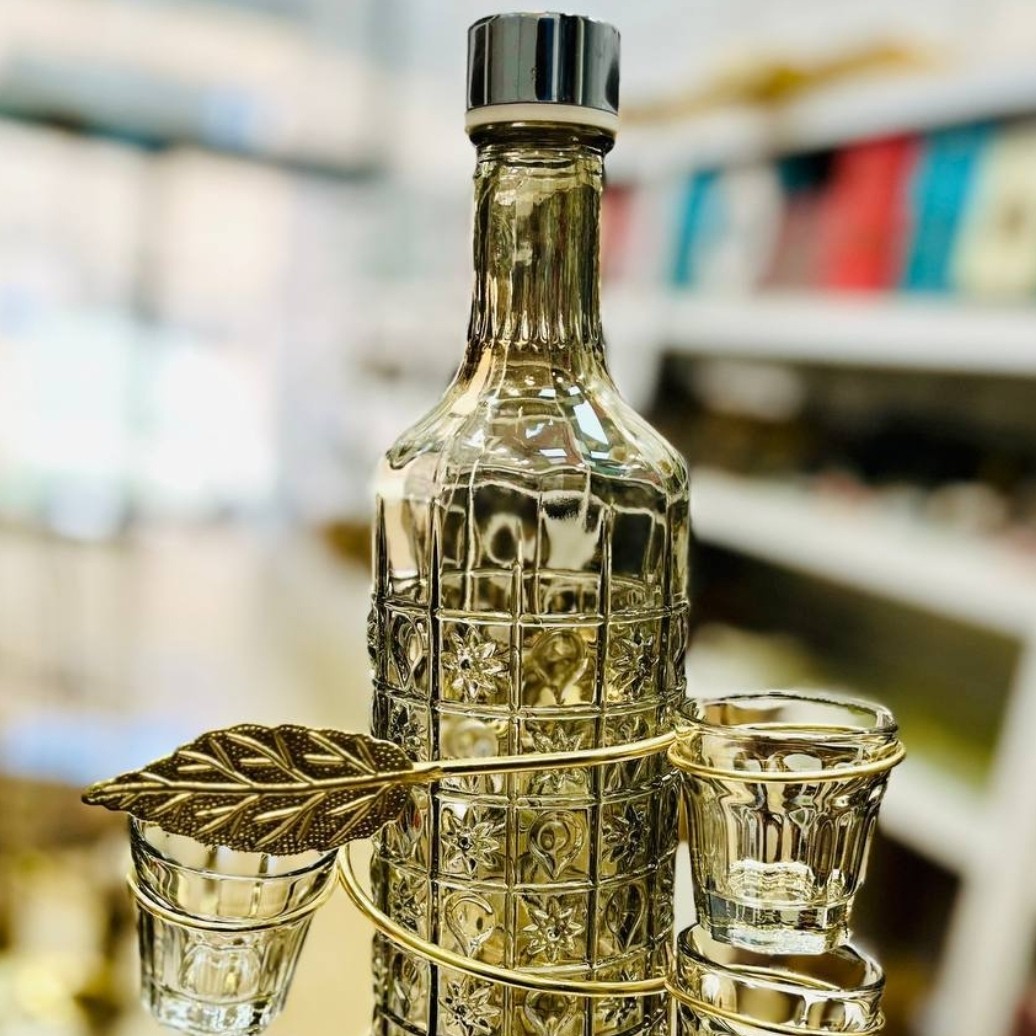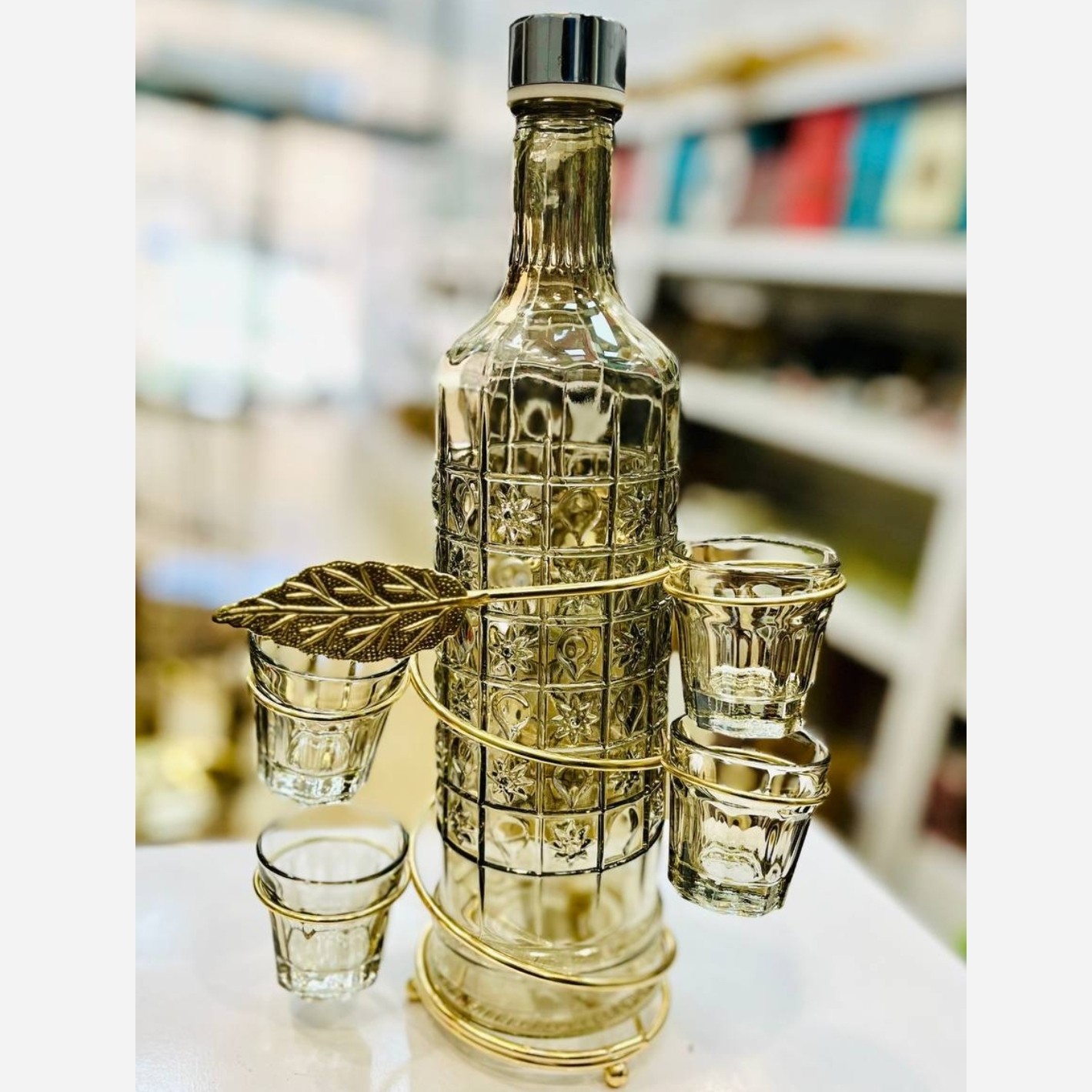 استند پذیرایی بطری بهمراه 6 عدد لیوان طرح ایستاده برگ مبلمونسرا مدل 273753