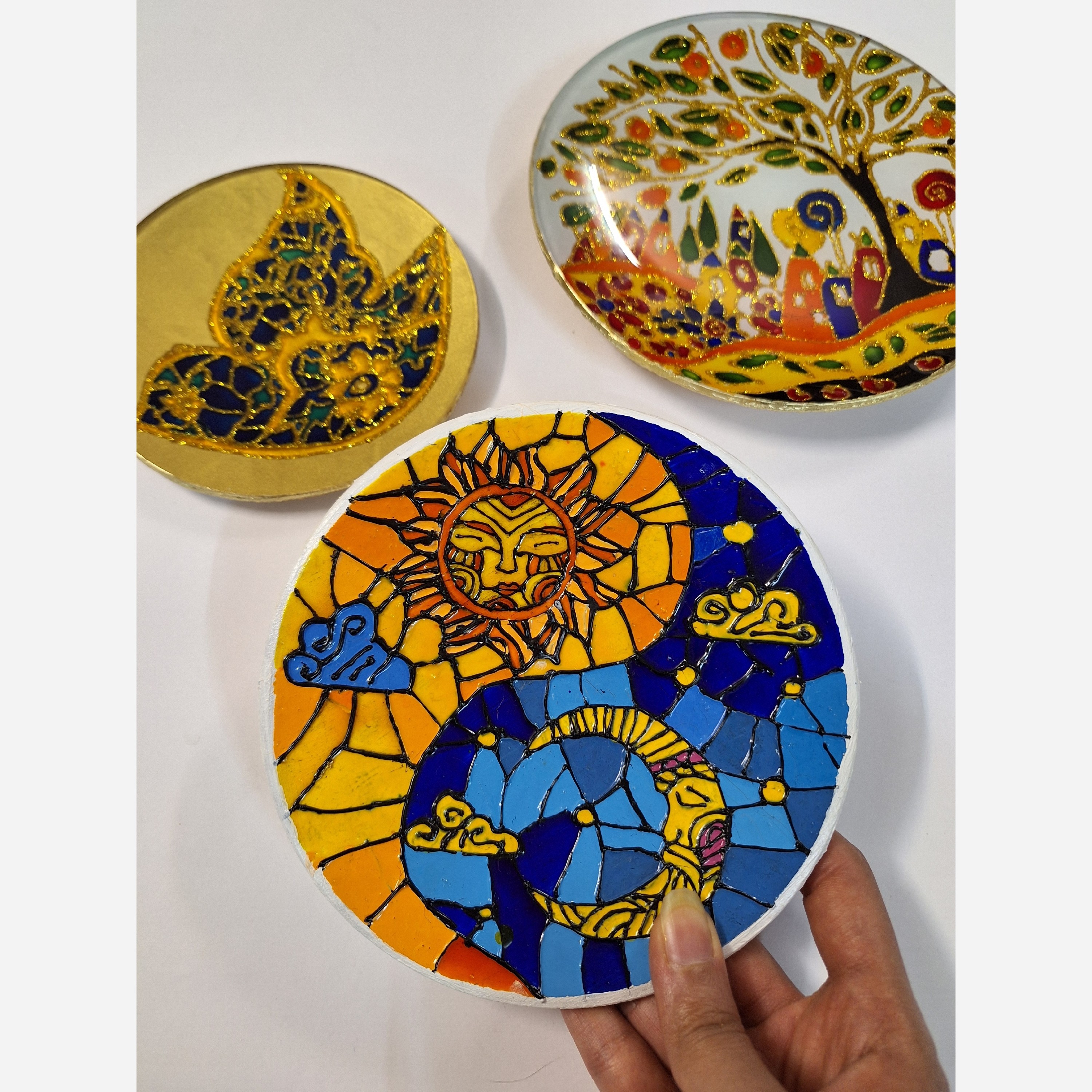 بشقاب دیوارکوب سفالی طرح ماه و خورشید مبلمونسرا مدل 260548