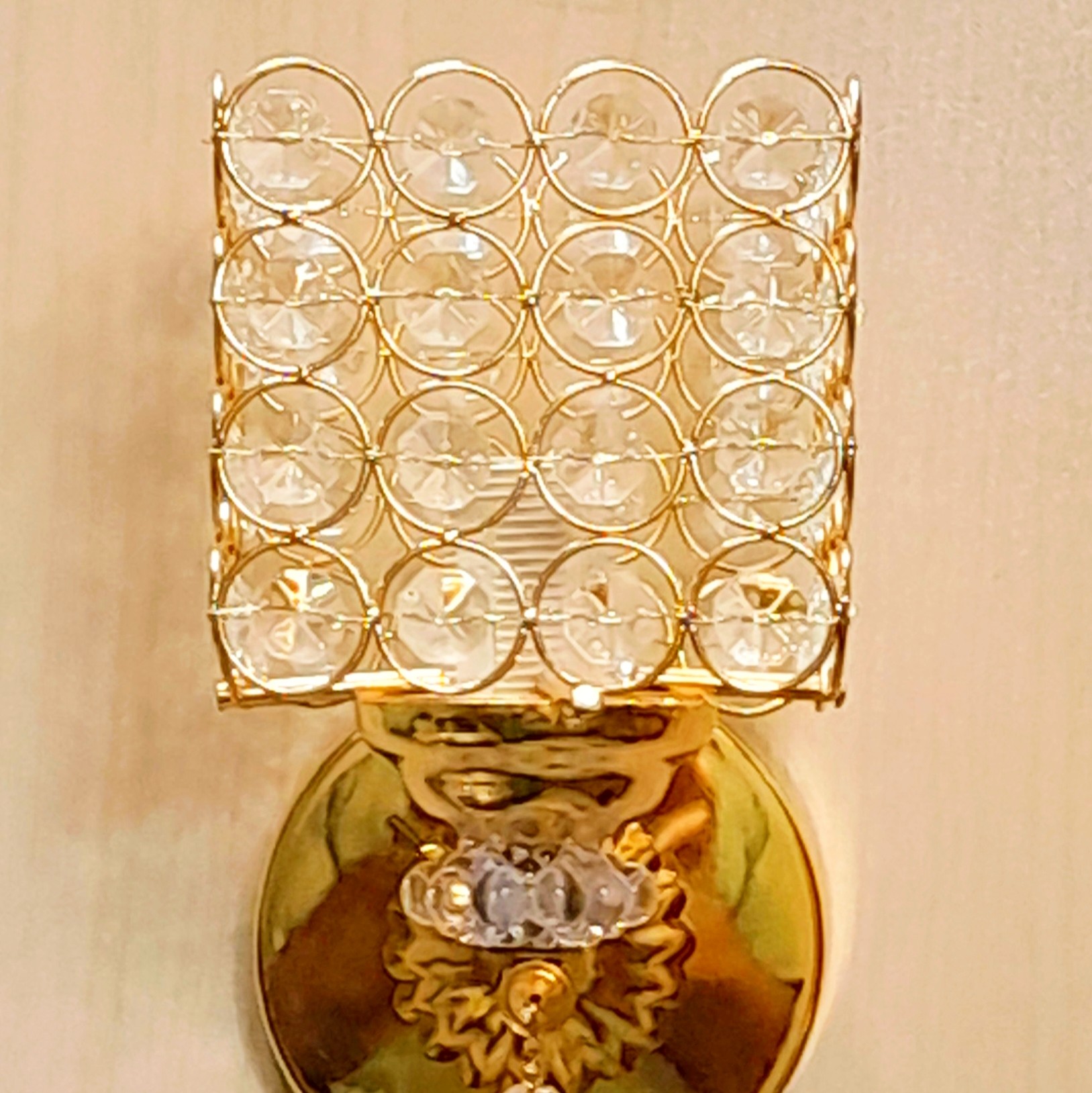 چراغ دیواری طرح دون کریستالی مربع دارای سرپیچ شمعی آبکاری فورتیک درجه یک رنگ طلایی