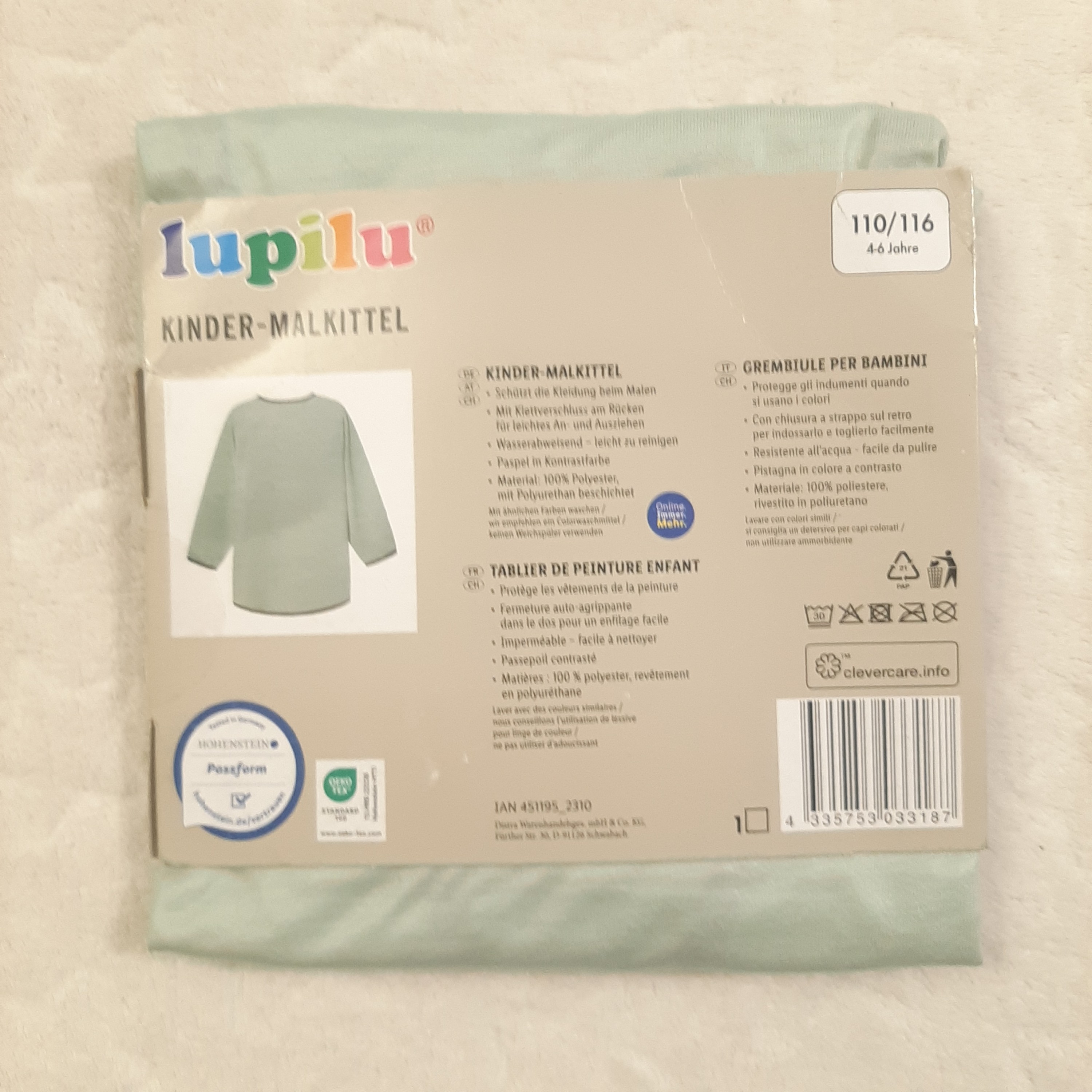 پیش بند نقاشی و کاردستی ضد آب پسرانه دخترانه سبز سایز 4 تا 6 سال مناسب مهد کودک و پیش دبستانی لوپیلو lupilu آلمان ارسال مبلمونسرا مدل 299980