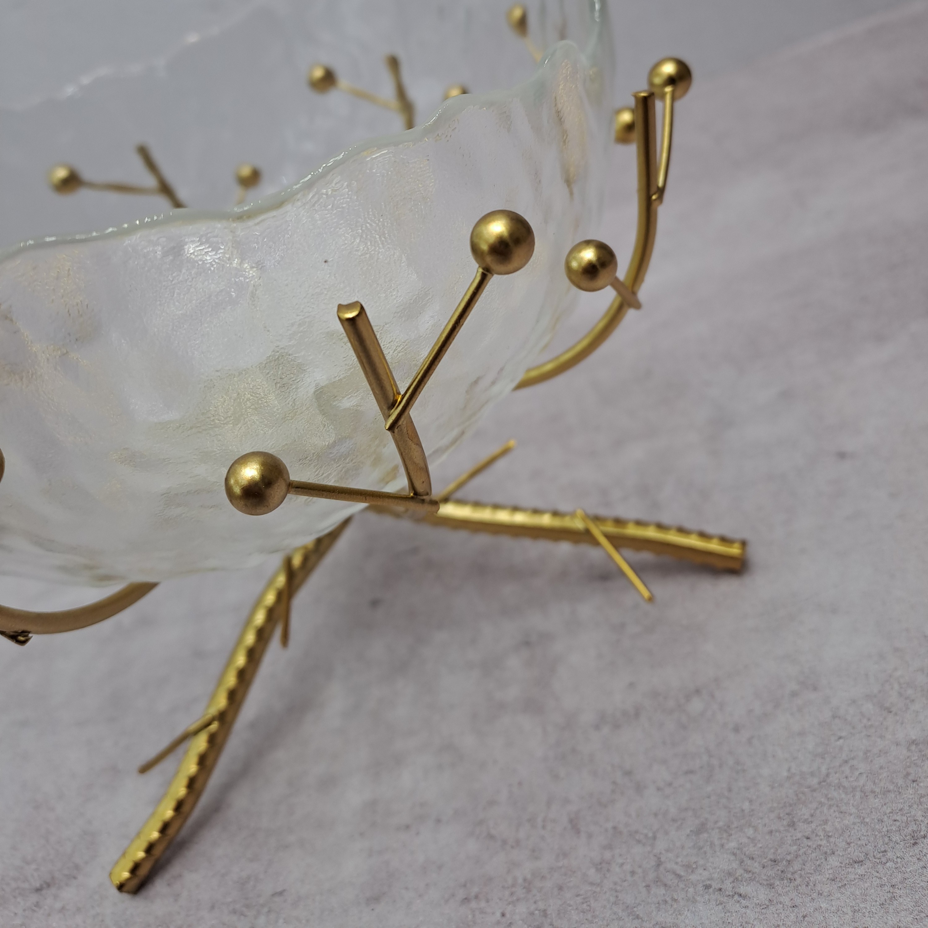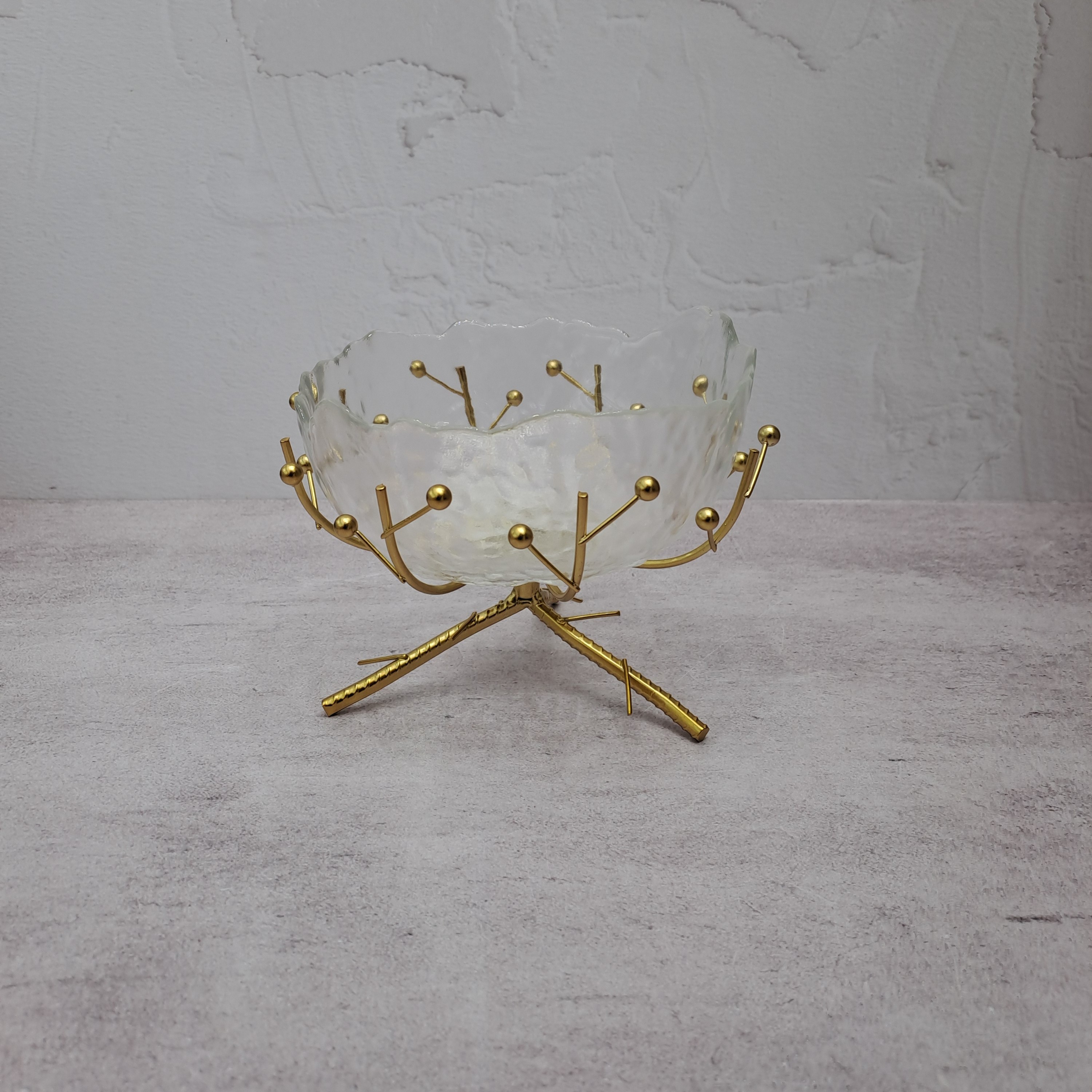آجیل خوری لوکس ترکیبی از بلور و پایه استیل طلایی مبلمونسرا مدل 265178