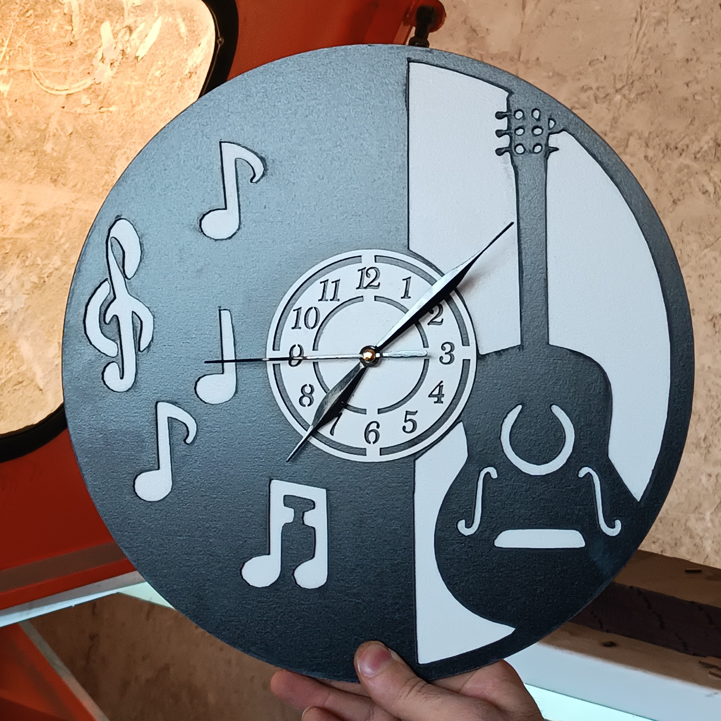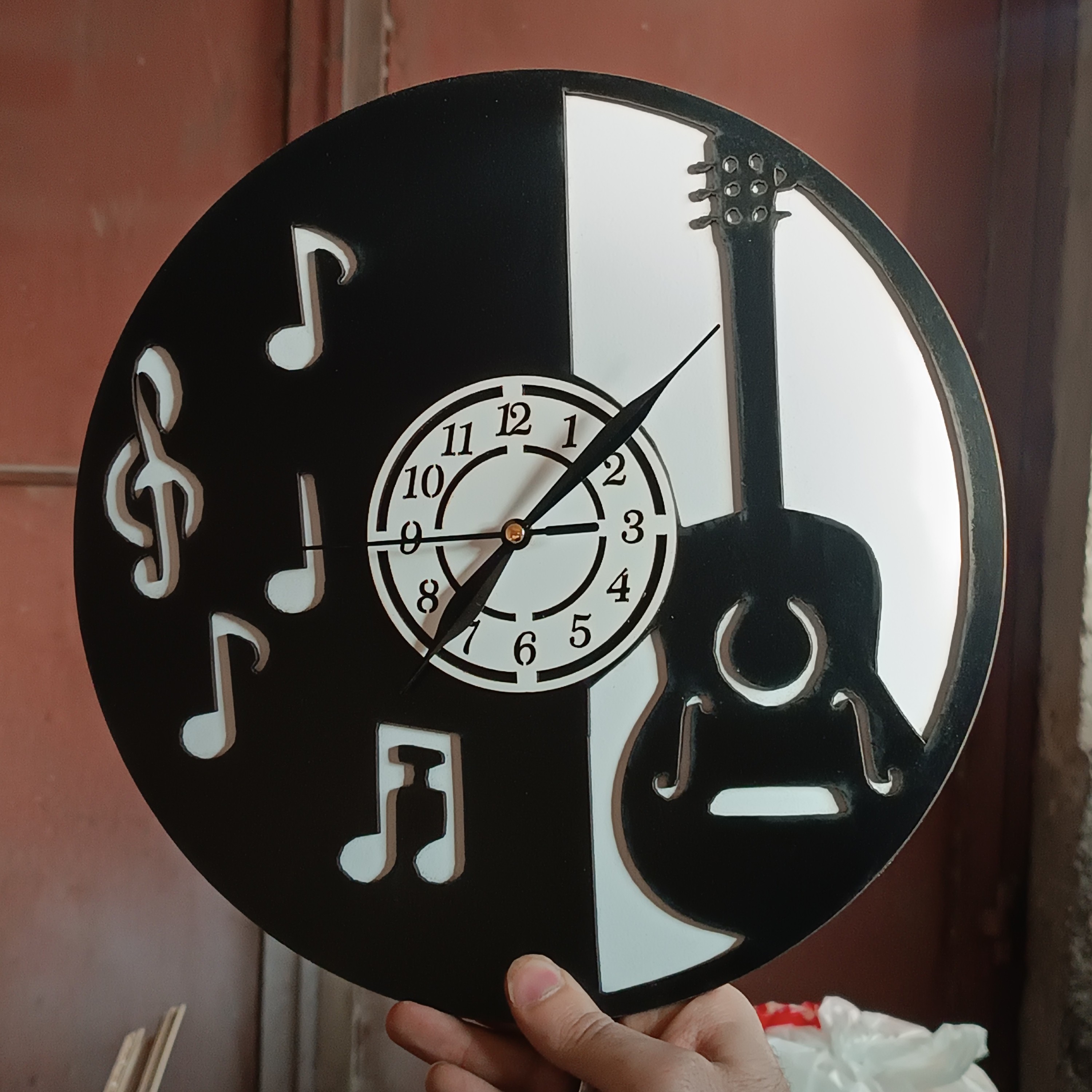 ساعت دیواری چوبی طرح موزیک و گیتار مبلمونسرا مدل 237113