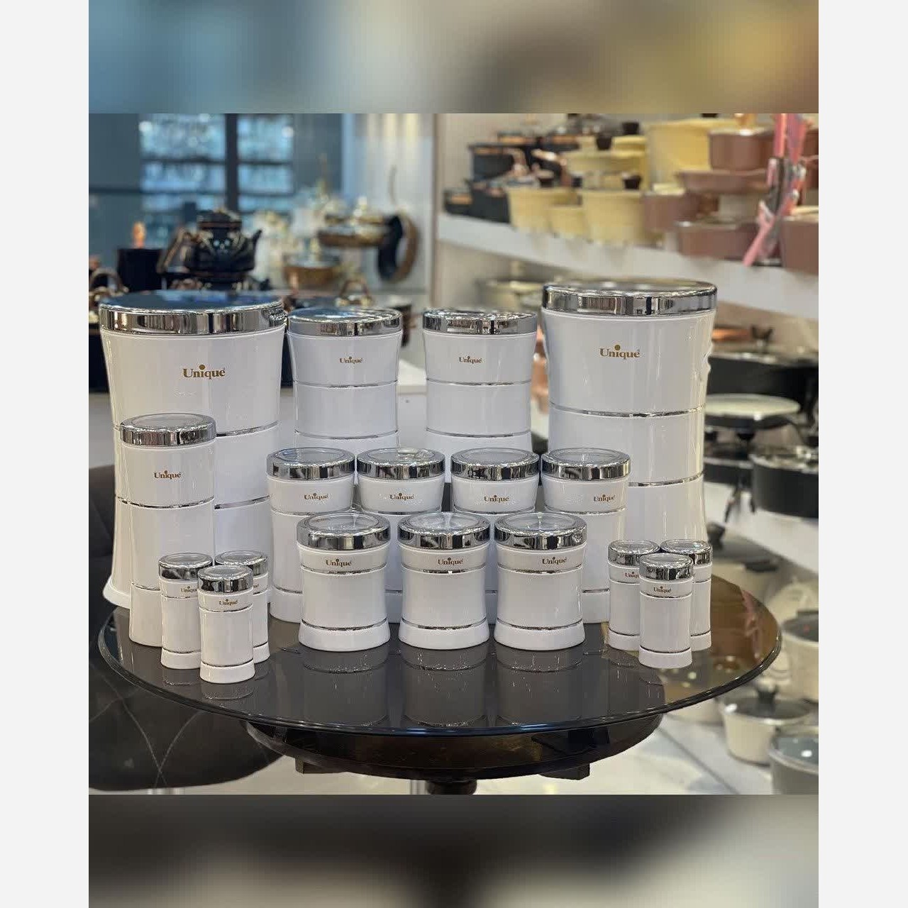 🤩سرویس آشپزخانه خفن 🔼18 پارچه 🔼رنگبندی رنگ های موجود: نقره در استیل مشکی درطلایی سفید در طلایی سفید در نقره ای کرم در طلایی رزگلد در نقره ای زیتونی در طلایی . . . . سرویس شامل: 👇👇👇👇👇👇 . . . 🔸سطل زباله 🔸سطل برنج 🔸سطل قند 🔸سطل شکر 🔸بانکه 1کیلویی 3 عدد 🔸بانکه 1/5 کیلویی 4 عدد 🔸جا ادویه 6 عدد 🔸️جا ماکارانی