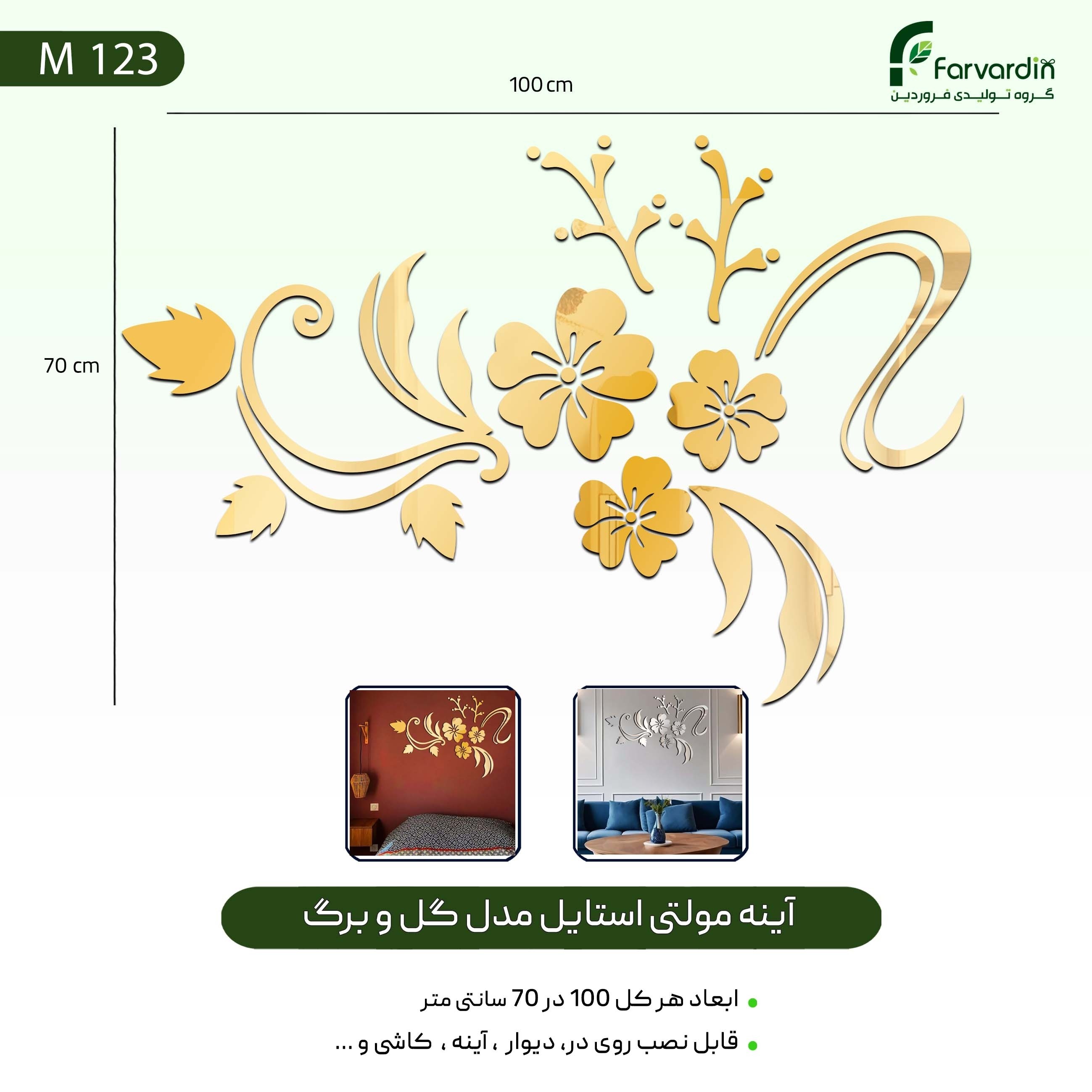 🟢 آینه مولتی استایل مدل گل و برگ کد M 123 - جنس مولتی استایل - قابل نصب روی سطوح صاف - به همراه چسب دوطرفه - رنگبندی طلایی و نقره ای 📱جهت سفارش و اطلاع از قیمت عمده پیام دهید