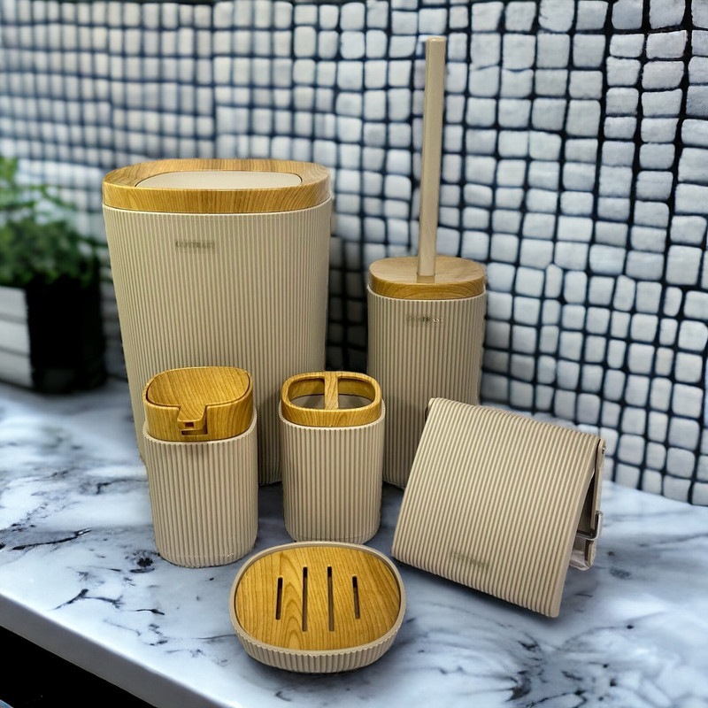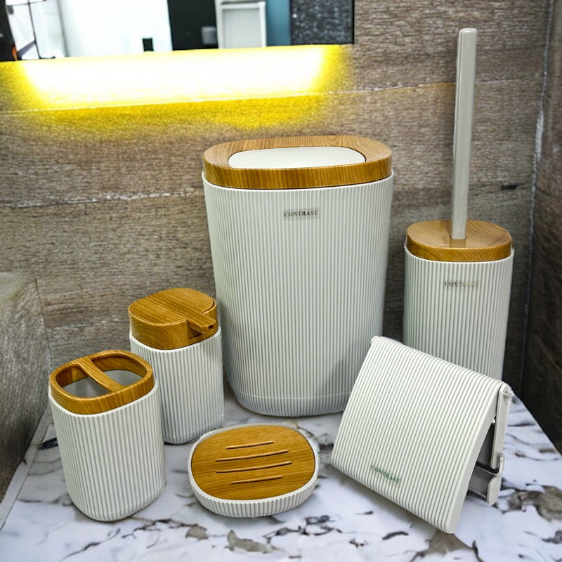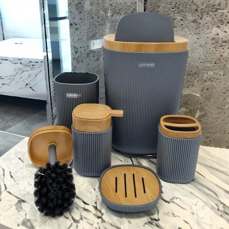 ست سرویس بهداشتی 6 پارچه کنتراست مدل شیاردار چوب کد TP7900 مبلمونسرا مدل 202184