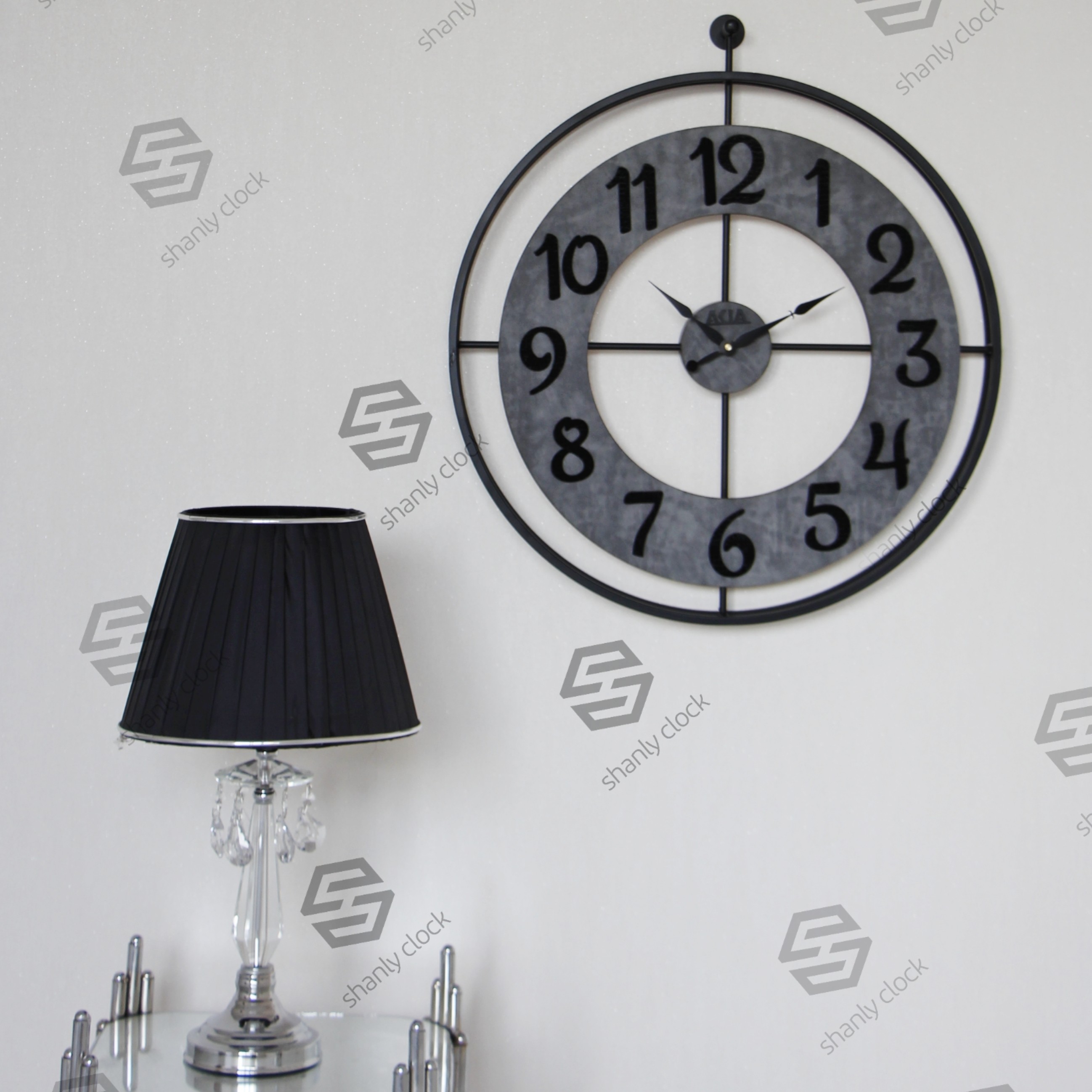 ساعت دیواری فلزی دورینگ مینیمال طوسی مبلمونسرا مدل 238242