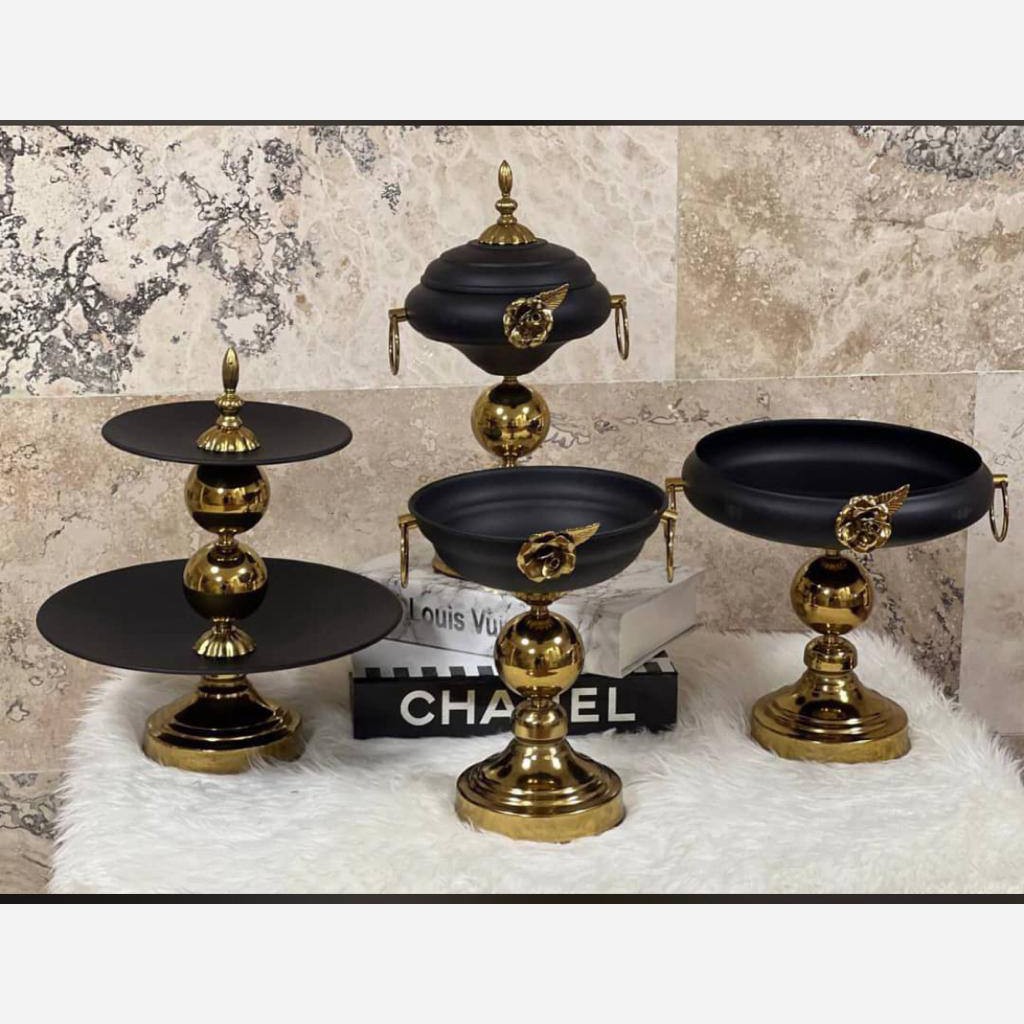 📌سرویس گلدار فلزی 📌4 تکه: شامل میوه خوری ،شیرینی خوری ،شکلات خوری ،آجیل خوری 📦تعداد در کارتن =1 سرویس 🎨رنگبندی:کرم طلایی،سفیدطلایی،مشکی طلایی،طوسی طلایی