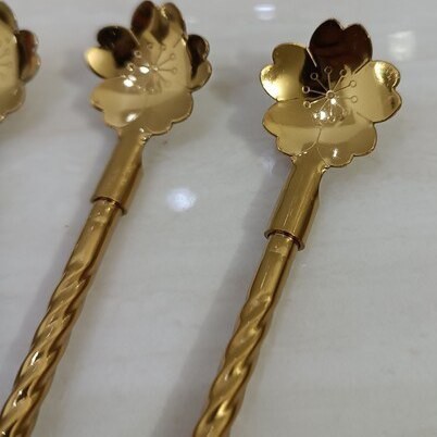 جذاب ترین محصولی که میتونین تو خونه داشته باشید 🤩🤩 نی شربت خوری طلایی طرح گل پیچ ست 6 عددی ساخته شده از استیل 304 فرچه دار موجب سهولت در شستشوی محصول میگردد نوشیدن شربت و بستنی به صورتیست که شما و میهمانان به راحتی می توانید بدون نیاز به قاشق و نی مجزا هر دو آنها را یکجا و با طراحی شیک و جذاب داشته باشید. این نی شربت ها دارای جنس استیل 18/10 آهنربا نگیر ضد زنگ در مدل مارپیچ طلایی با سایز 20 سانتی متر است که در بسته های 6 عددی بهمراه فرچه تمیز کننده روانه بازار شده است.