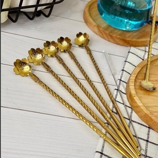 نی شربت خوری طرح گل استیل نی شربتی گلبرگ استیل ست 6 عددی مبلمونسرا مدل 272588