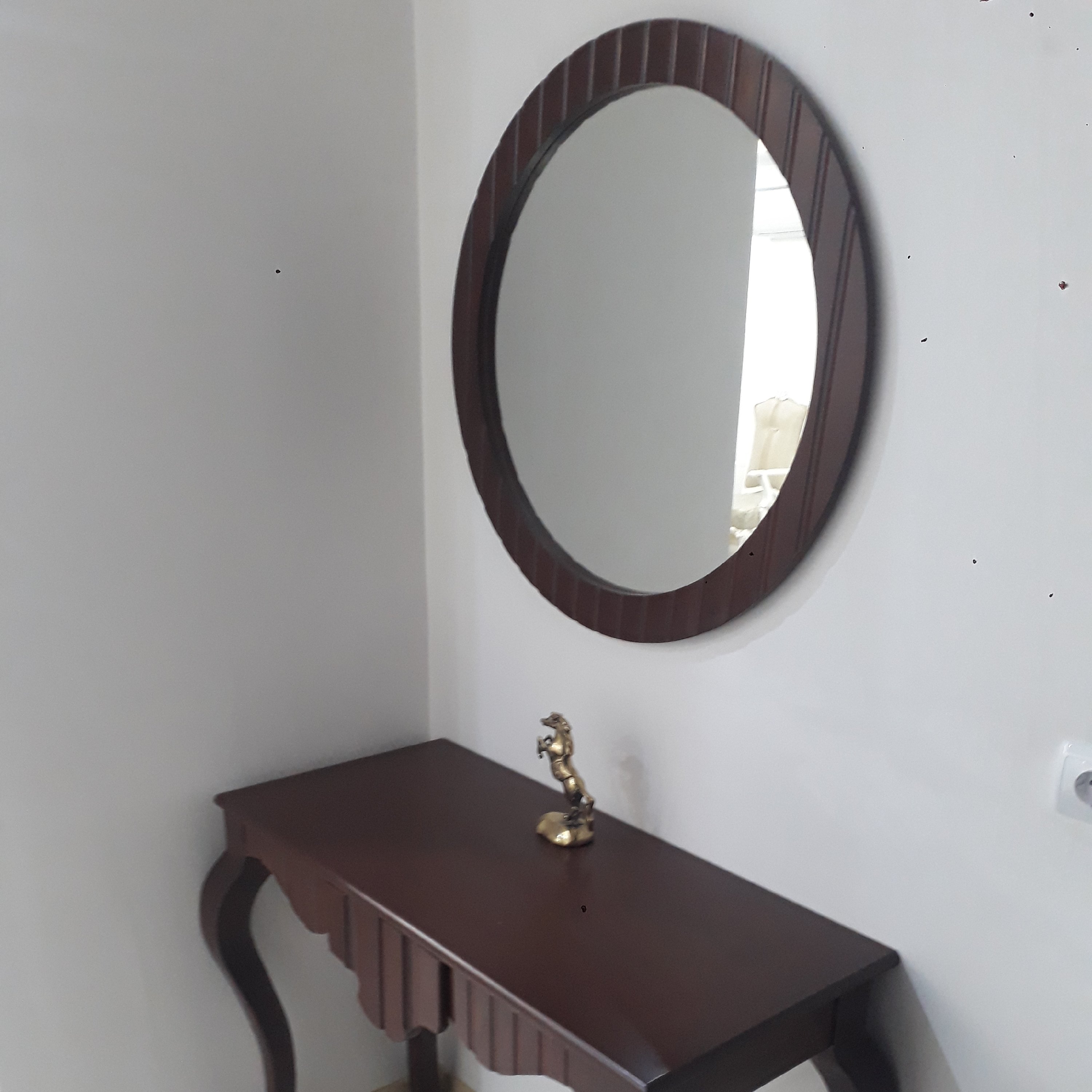 کنسول شیک و لاکچری تک کشو و آینه گرد یا بیضی در رنگ بندی های مختلف از جنس چوب بدون ام دی اف یا روکش