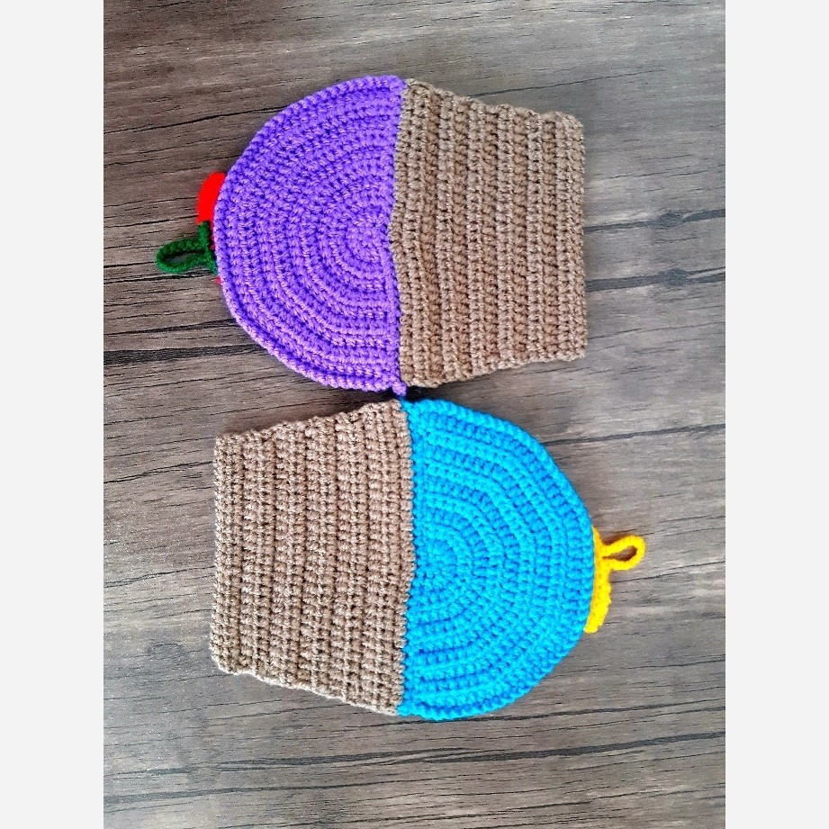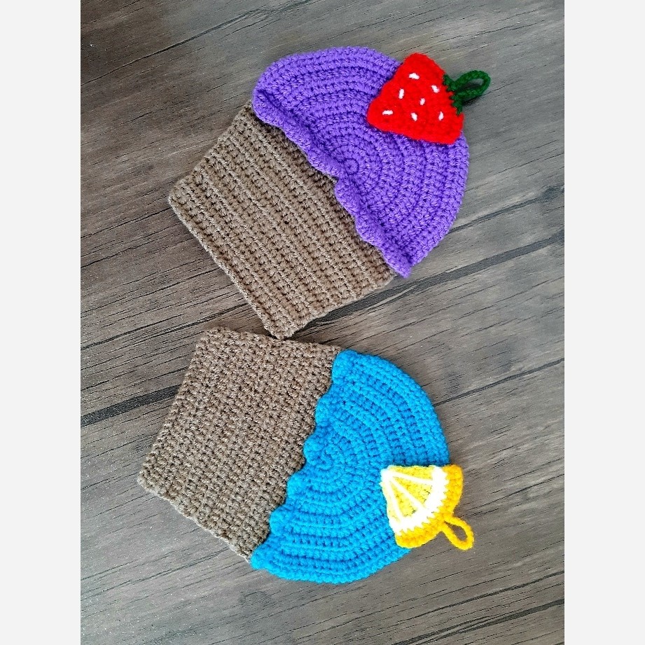 دستگیره آشپزخانه بافتنی طرح کیک میوه ای توت فرنگی و پرتقالی، قابل شست و شو با آب ولرم تا سرد ، ماندگاری بالا، قیمت برای یک عدد میباشد