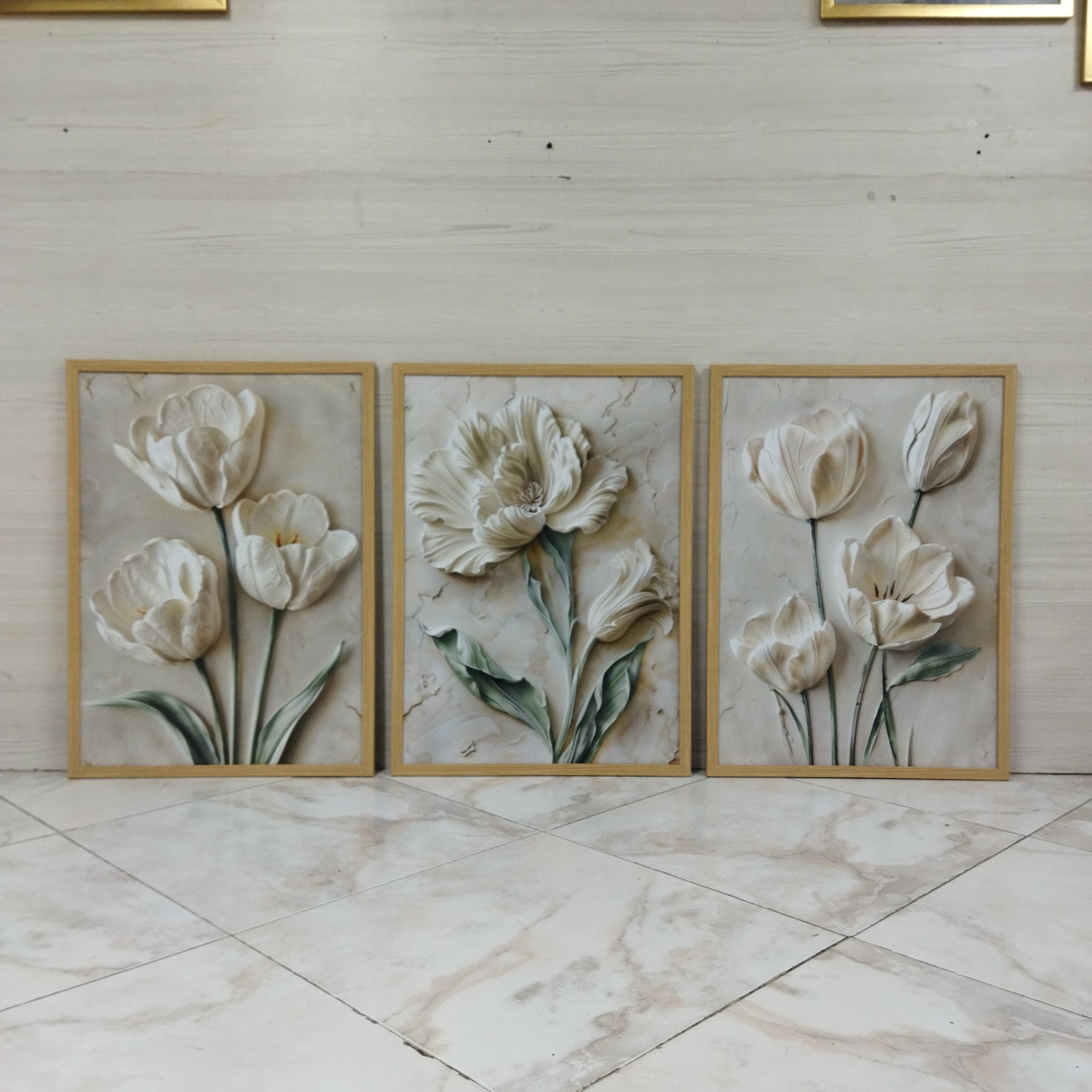 تابلو دکوراتیو سه تیکه گل های سبک برجسته سایز35در50 مبلمونسرا مدل 267093