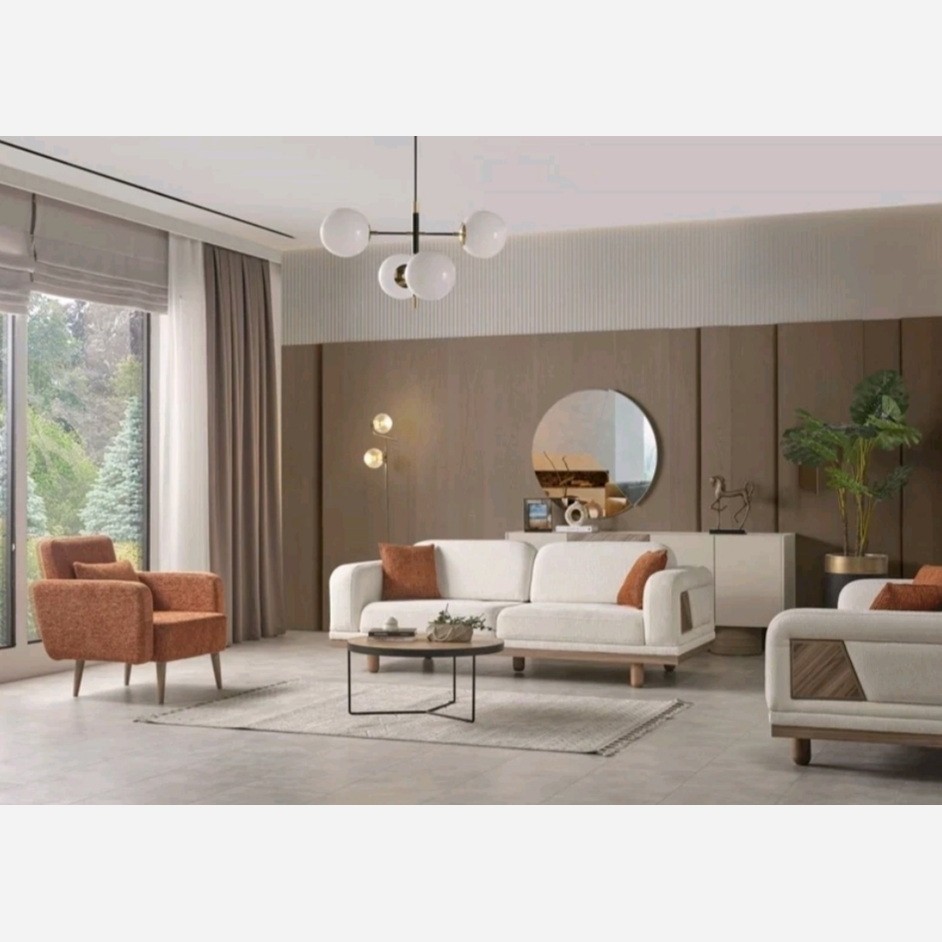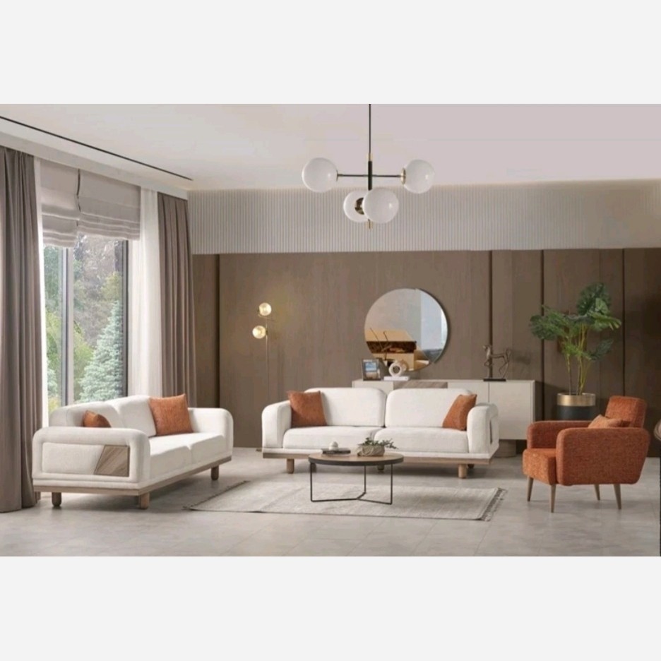 مبل مینیمال به همراه صندلی تک نفره و پاف پارچه ای 40×40 پارچه مبل به صورت پیشنهادی مارج، تدی یا لینا به سلیقه شما عزیزان رنگ پارچه و چوب طبق سفارش مشتری