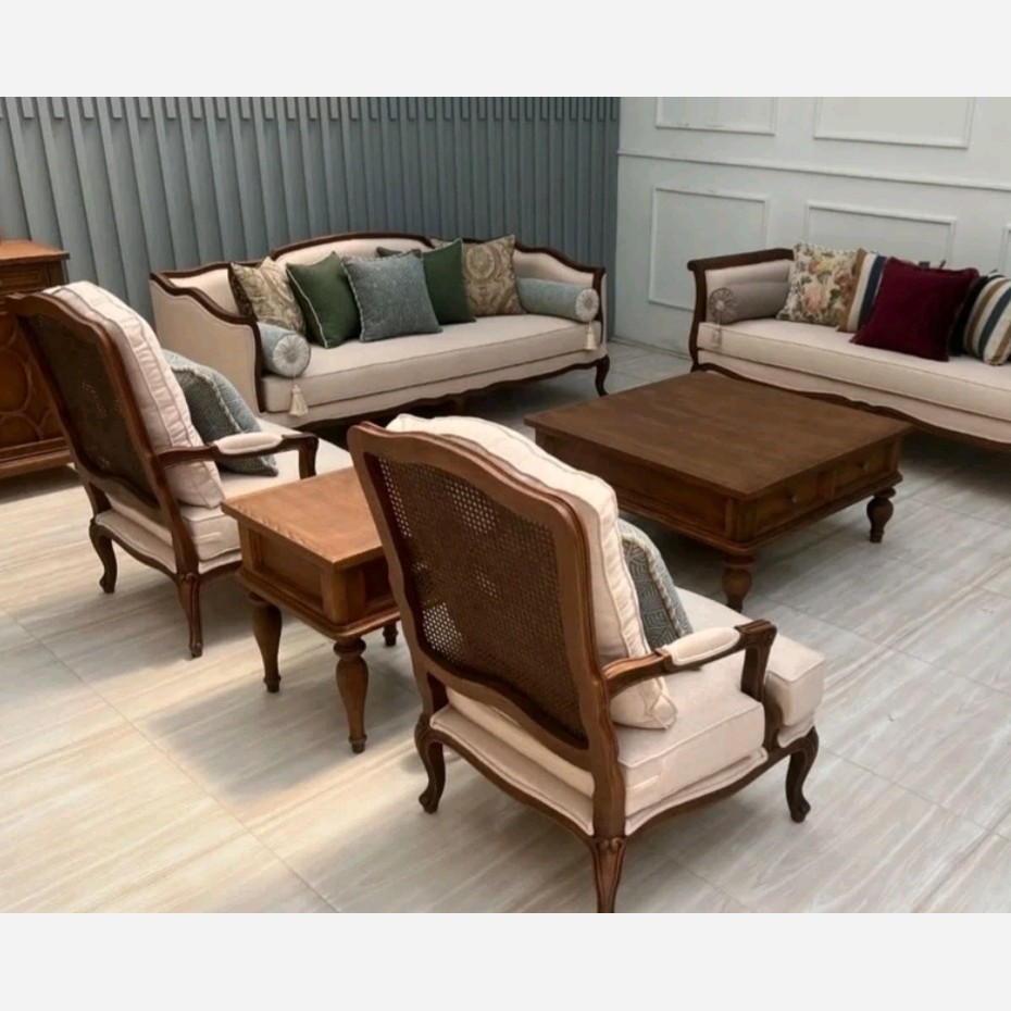 ترکیب مبل های فرانسوی بدون محدودیت چوب راش درجه یک امکان تغییر رنگ پارچه و چوب امکان تولید با چوب گردو توسکا و راش