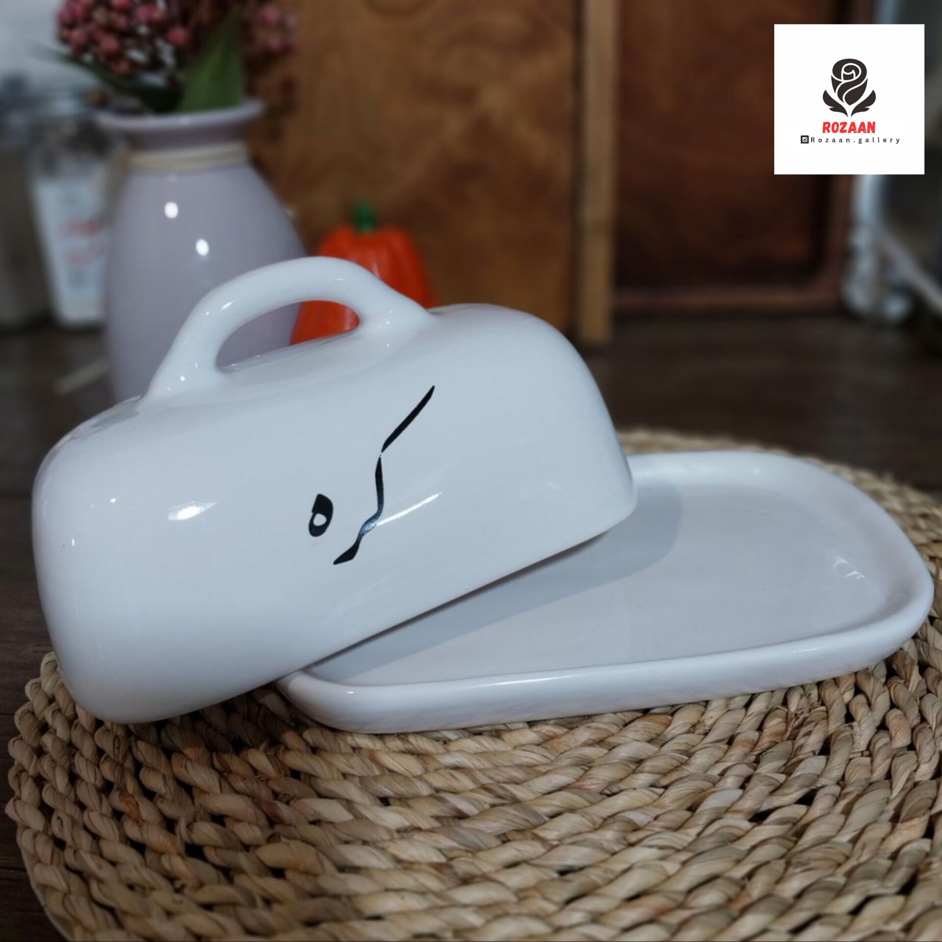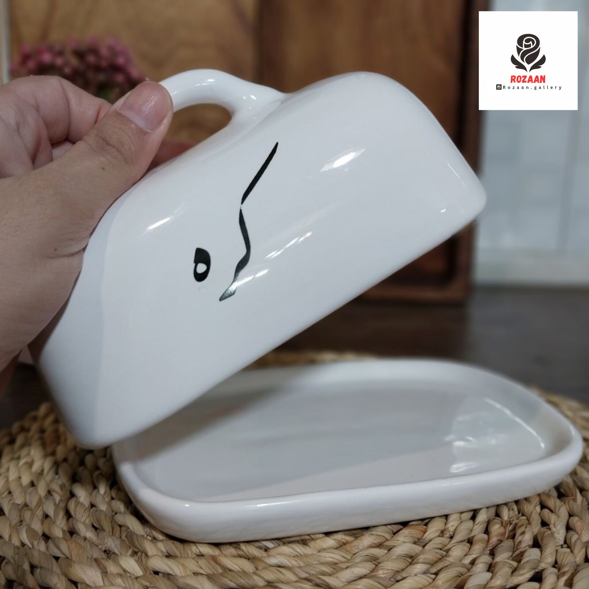 کره خوری سرامیکی دارای درب دستگیره دار جنس سرامیک بادوام و قابل شستشو