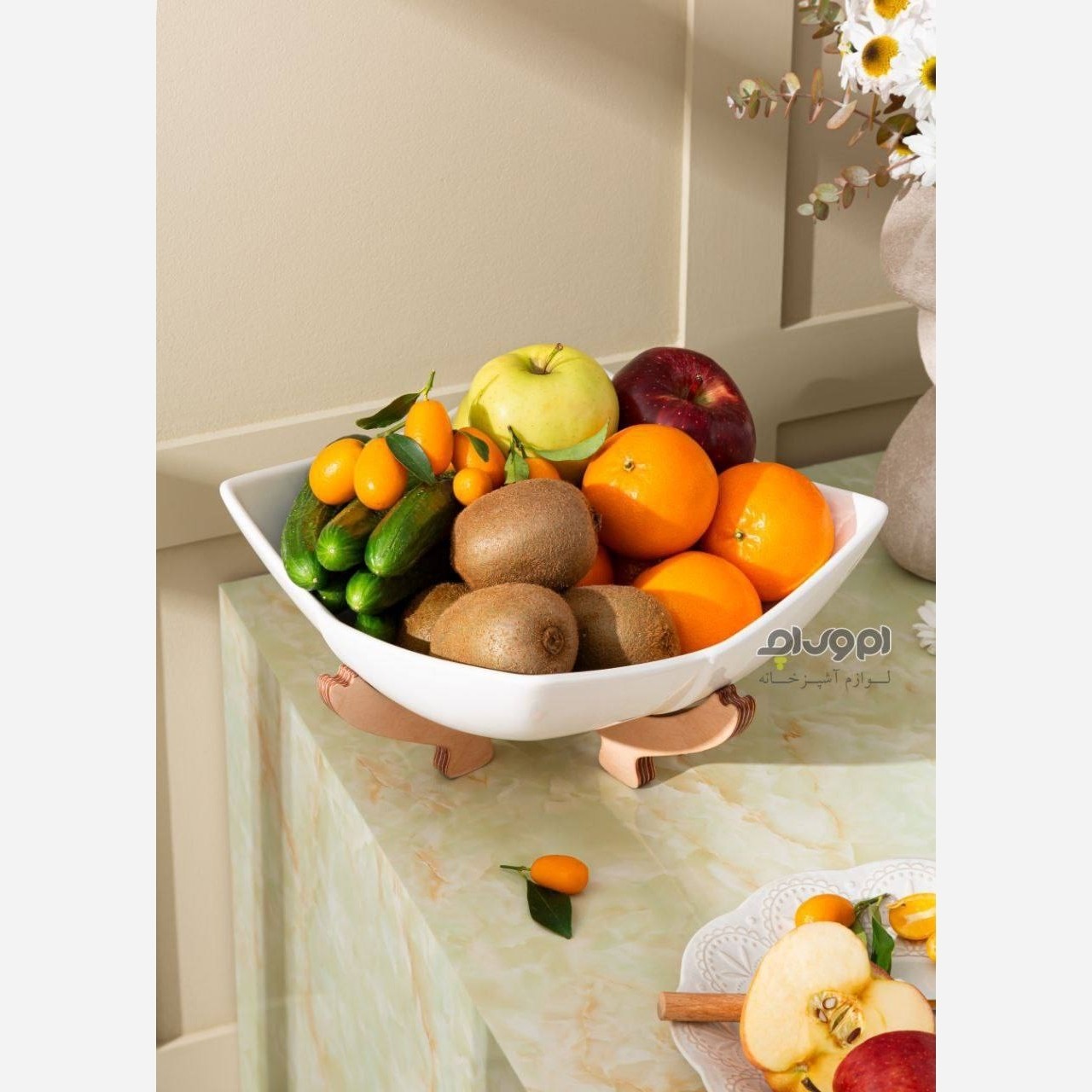 میوه خوری سرامیکی پایه چوبی مربع لاله کیفیت عالی جنس سرامیک مبلمونسرا مدل 273006