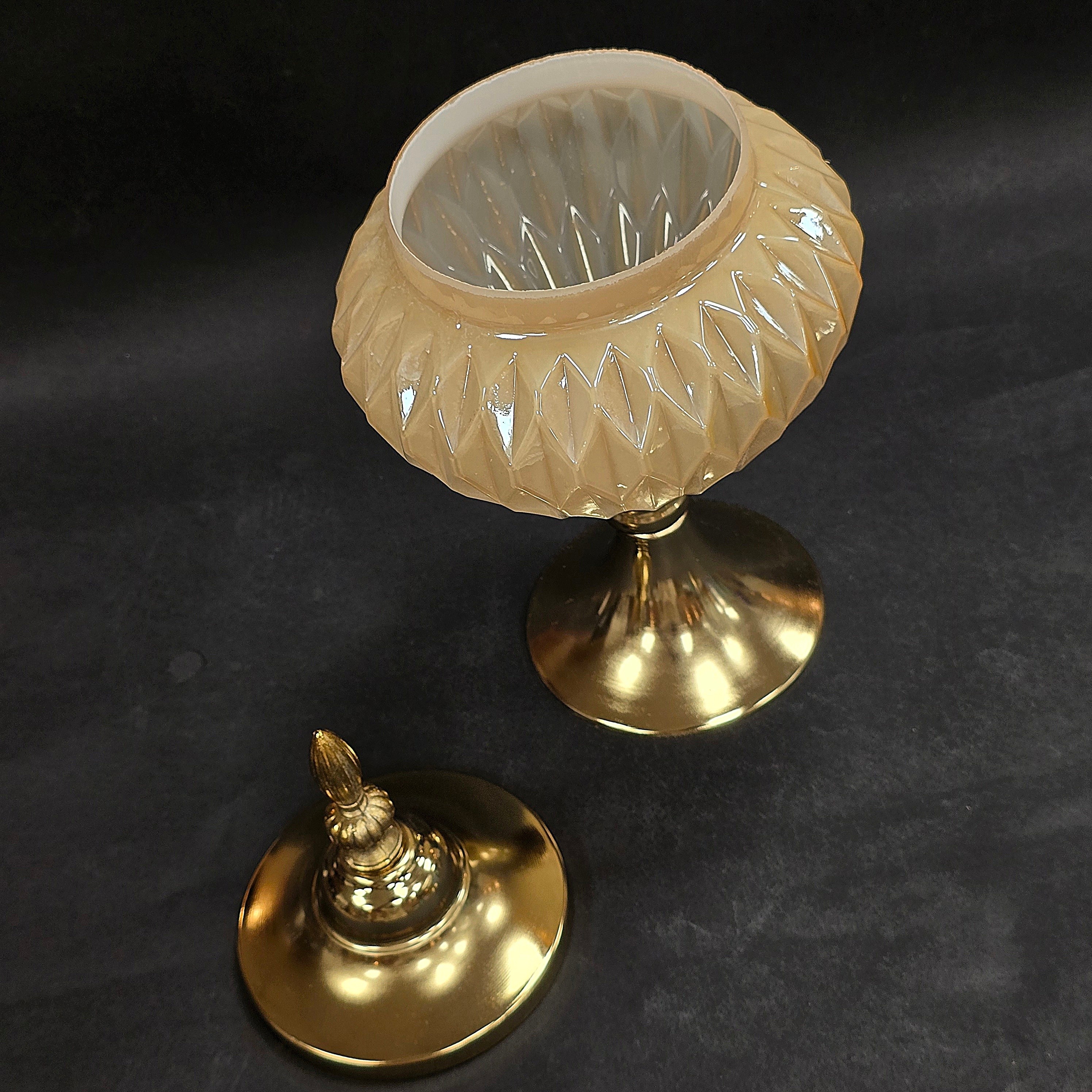 ⭕️شکلات خوری پایه دار جام سازان ایسلند کاراملی 🔻جنس شکلات خوری بلور با پوشش رنگ کاراملی/پایه و درب فلزی با رنگ طلایی ثابت 🔻مناسب پذیرایی شکلات،اجیل،تنقلات و .../کادویی/مصارف هتل و کافه و اداره جات ⚠️لطفا قبل از سفارش جهت اطلاع از موجودی پیام دهید 📦ارسال فوری با ضمانت بصورت به سراسر کشور
