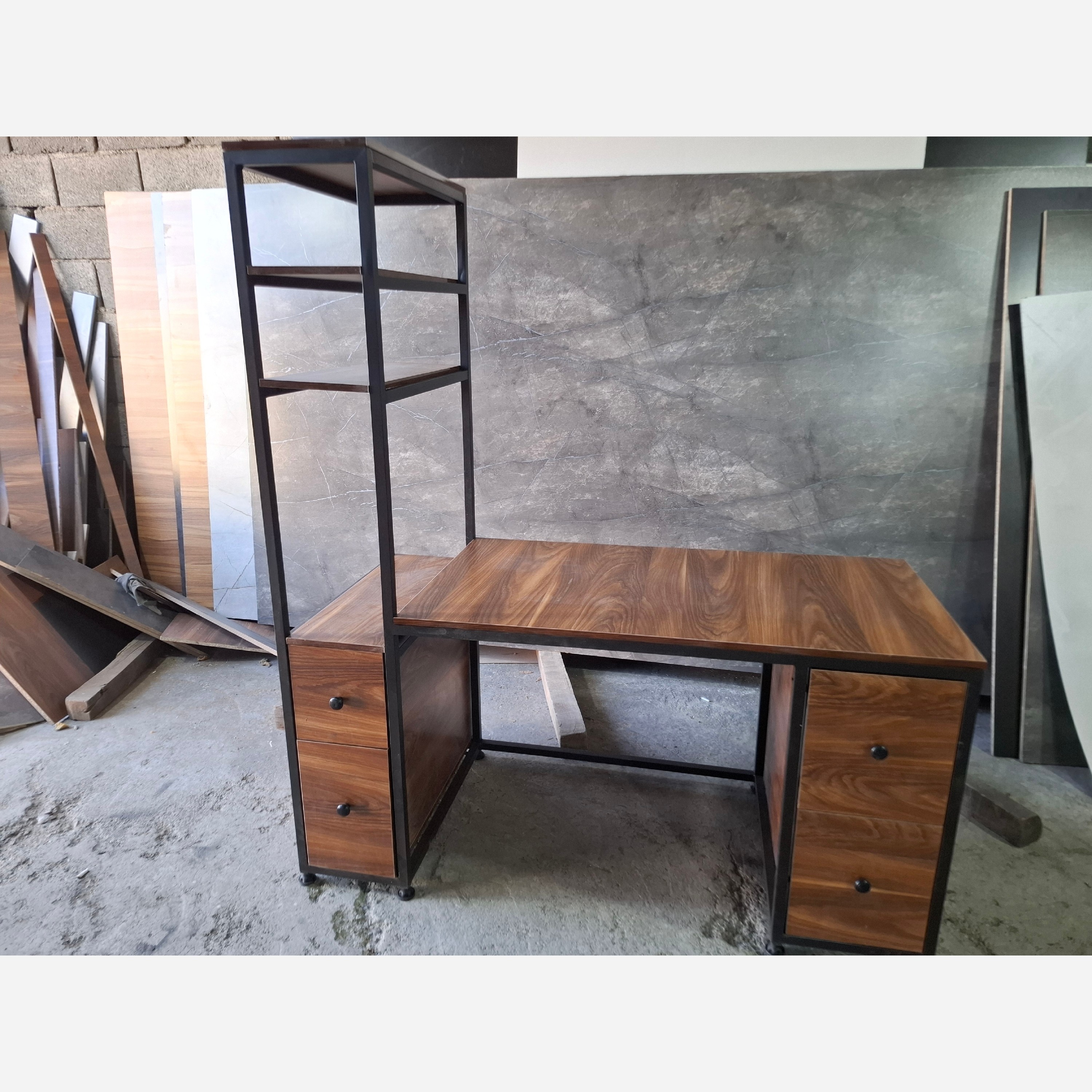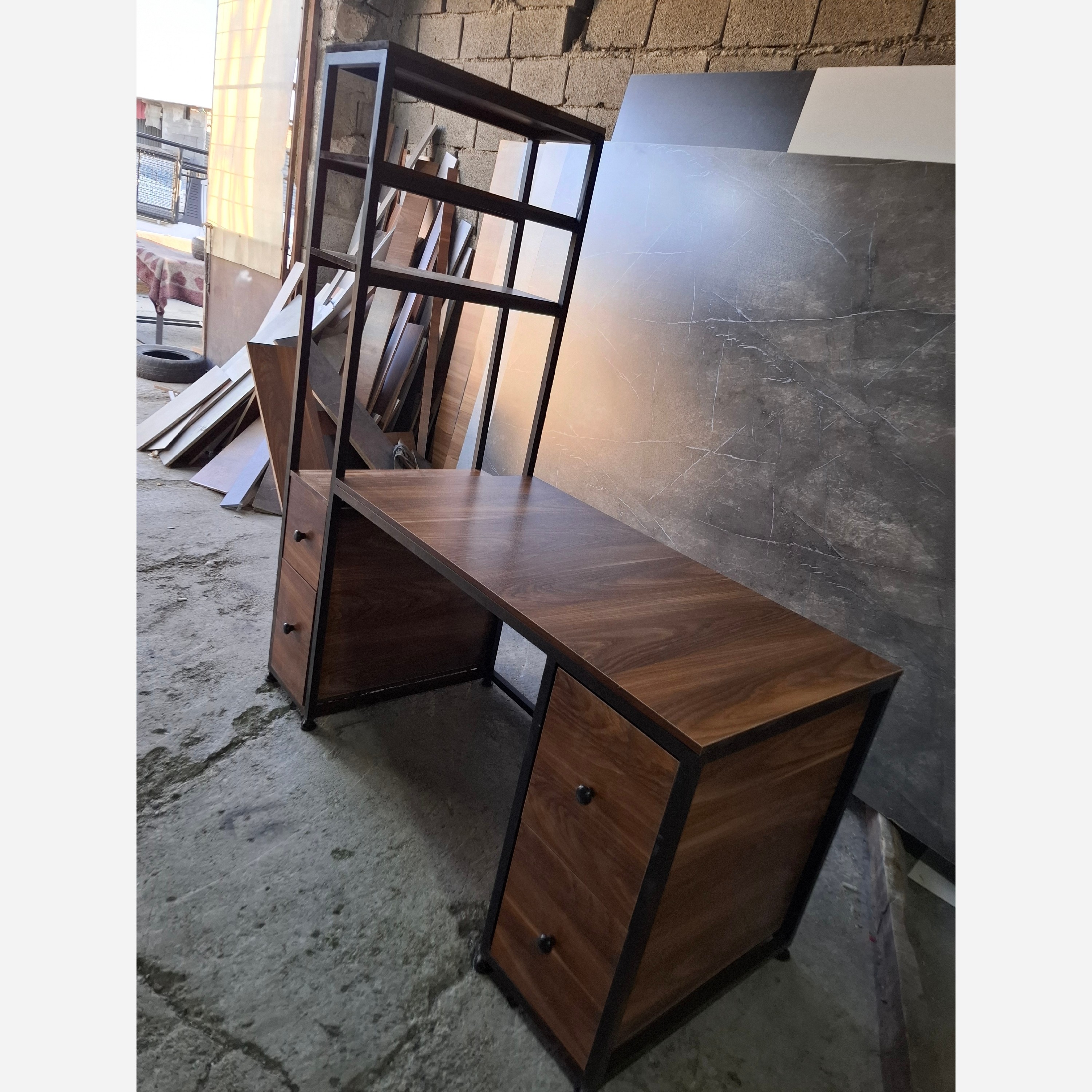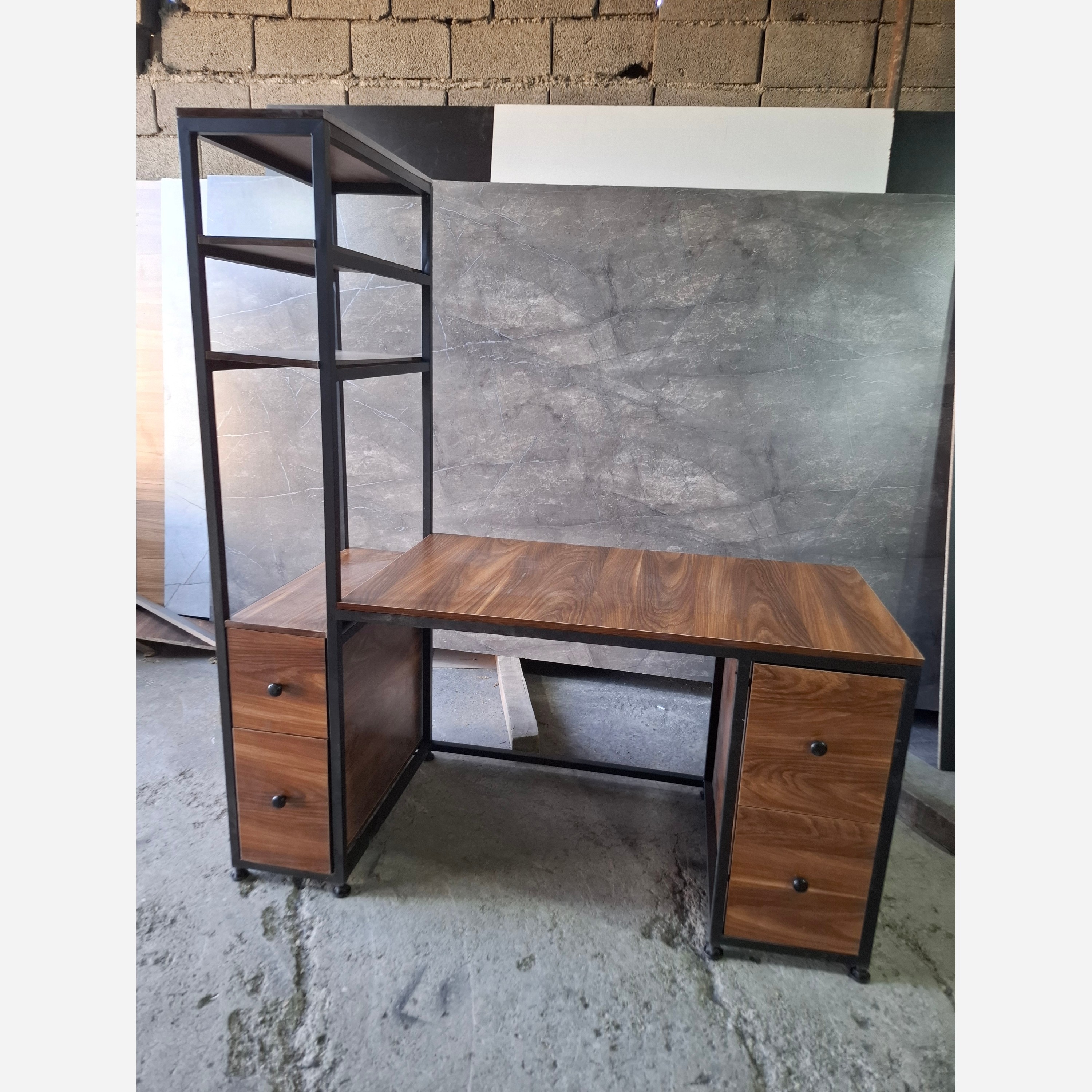 میز شلف دار کتابخانه دار میز کامپیوتر چوبی فلزی مبلمونسرا مدل 218748