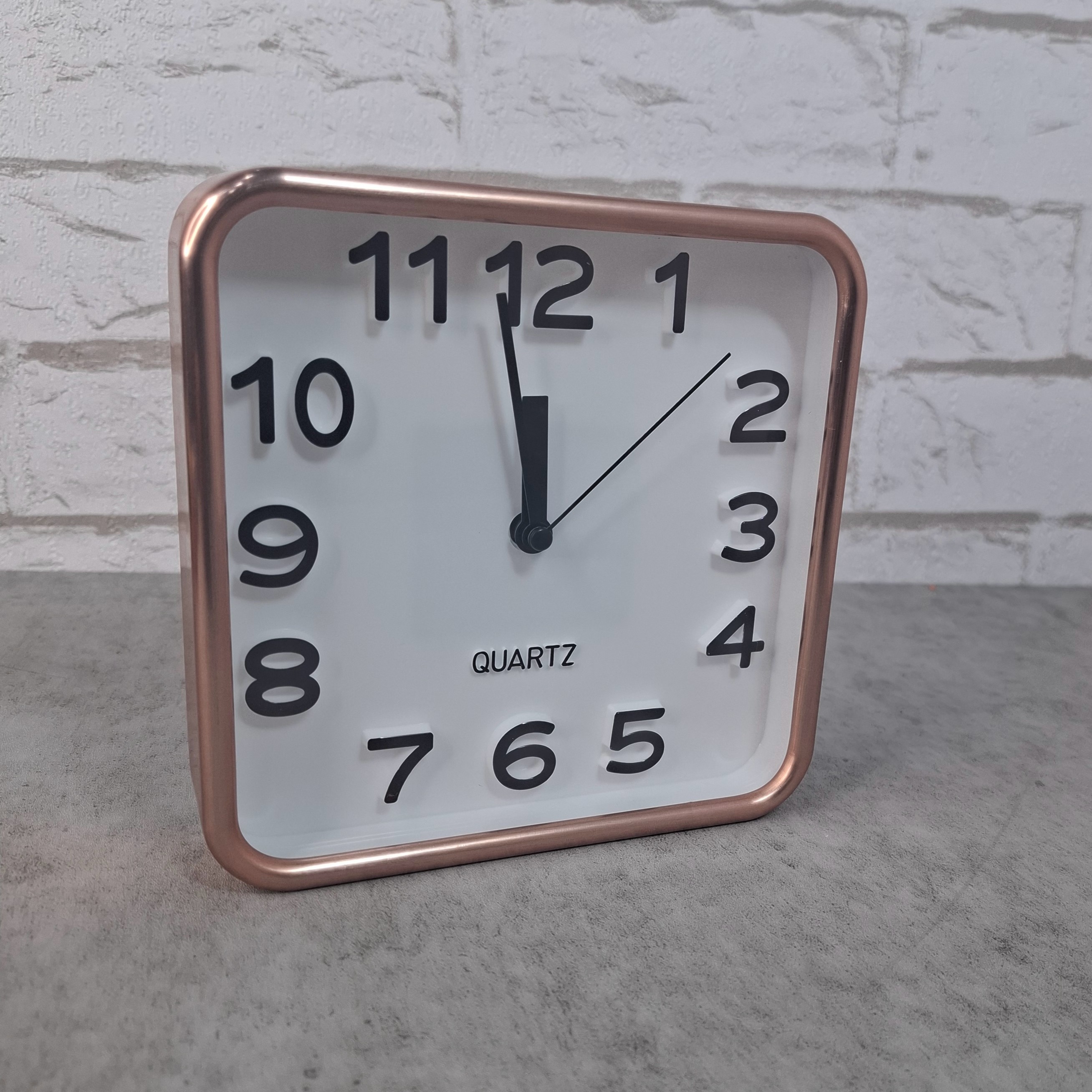 ساعت زنگدار طرح مربعی رنگ طلایی جنس بدنه پلاستیک ابعاد 15 در 15