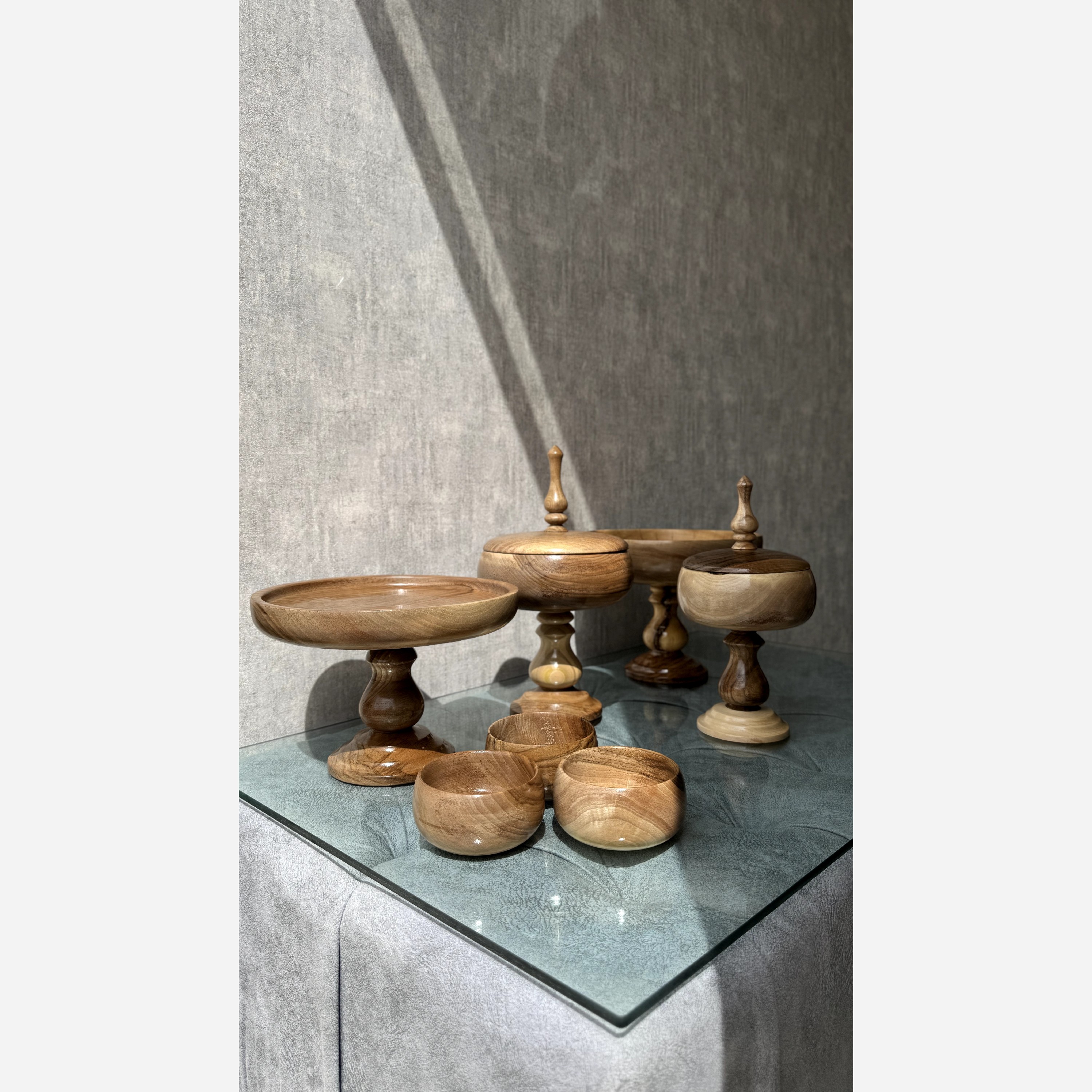 محصولات چوبی از چوب طبیعی بدون رنگ آمیزی تولید میشوند و نقش هر چوب و ظرف با نقش دیگری متفاوت است