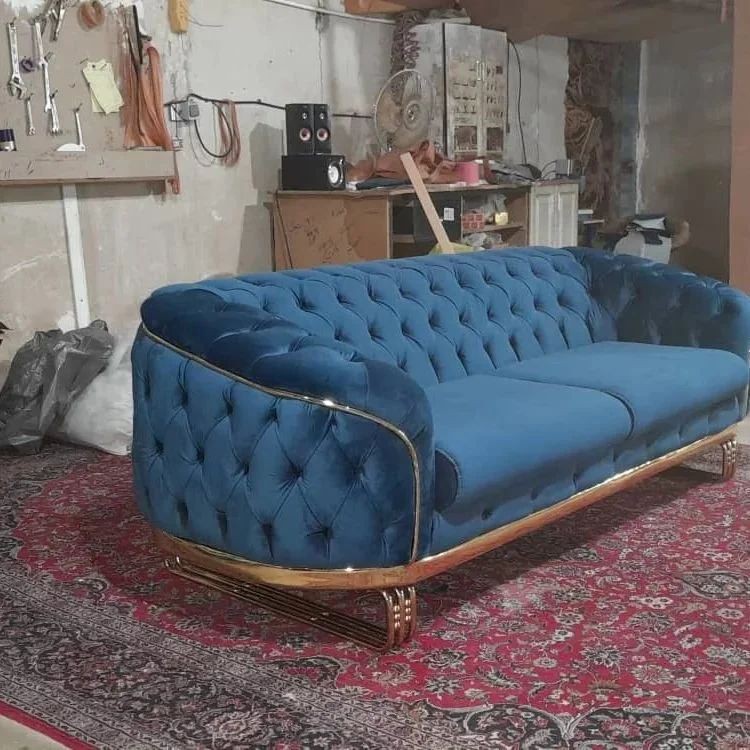 کاناپه 3 نفره مدل چستر لاوین چوب کلاف روس ✅ پارچه دیاموند ضد لک ✅ کف فوم فشرده ✅ پایه ها فلزی ✅ لمسه ها کار دست می باشد ✅ ارسال به سراسر ایران ✅ هزینه ارسال به عهده مشتری است و می باشد ✅