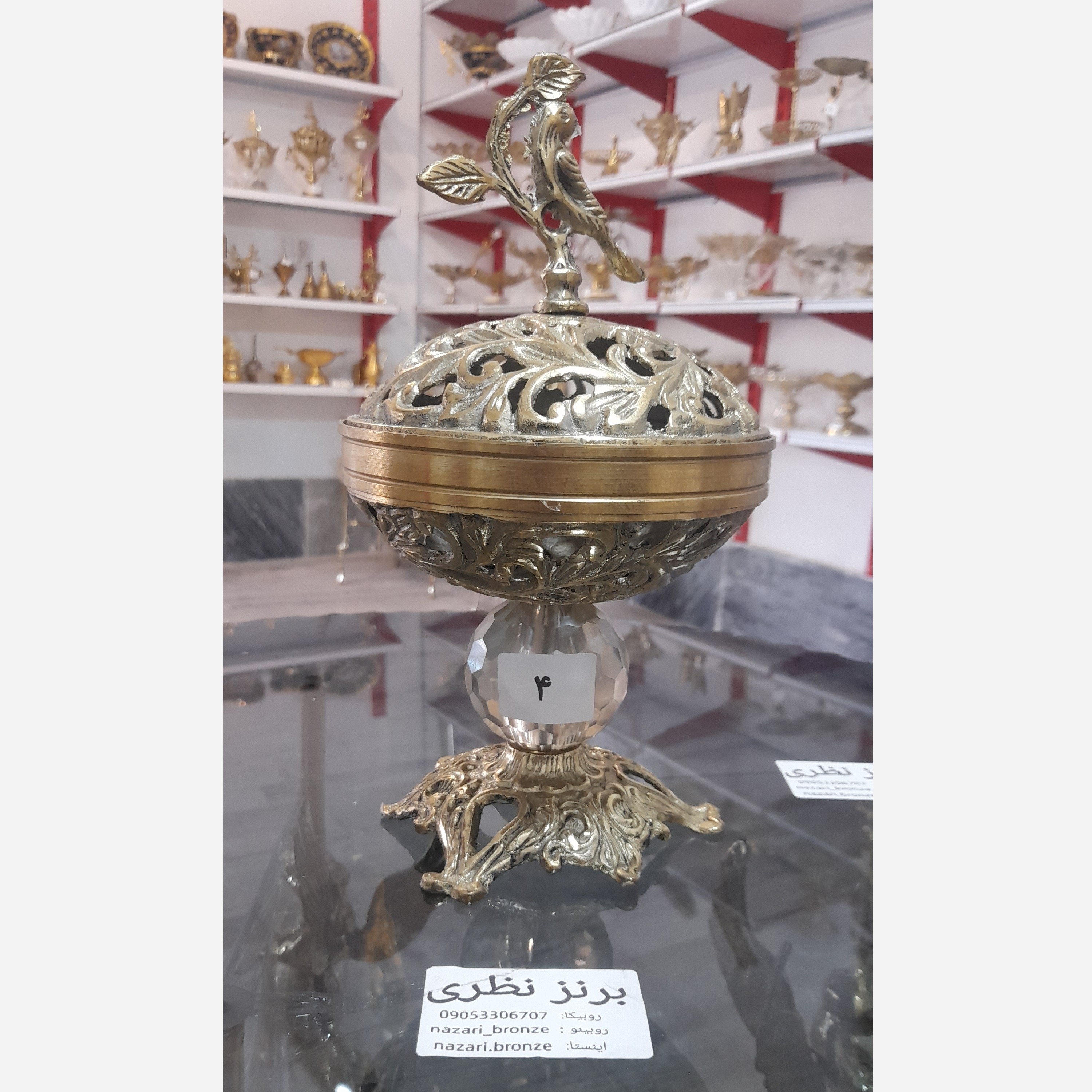 شکلاتخوری برنزی ارتفاع 27 سانت دربدار تنه گویی کریستالی ضمانت اصالت برنز