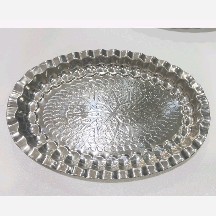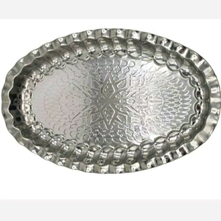 دیس بیضی استیل لب کنگره طرح لوزی سایز 37/24 مبلمونسرا مدل 270950