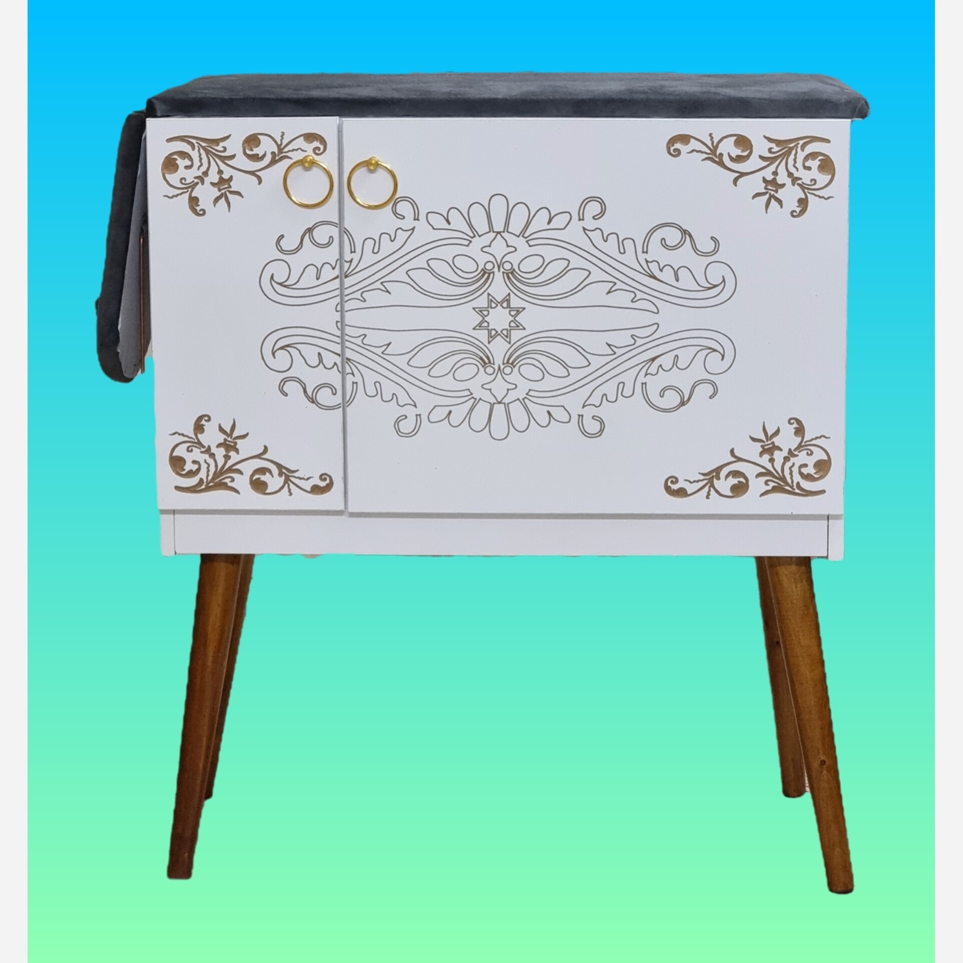 میز اتو و چرخ خیاطی ام دی اف پارچه رویه از جنس پارچه مبلی درب ها لولا آرام بند هستند جنسه پایه ها از جنس چوب میباشد در صورت نیاز طرح های دیگر موجود هست هر طرح با پارچه دیگری خواستید آماده میشود