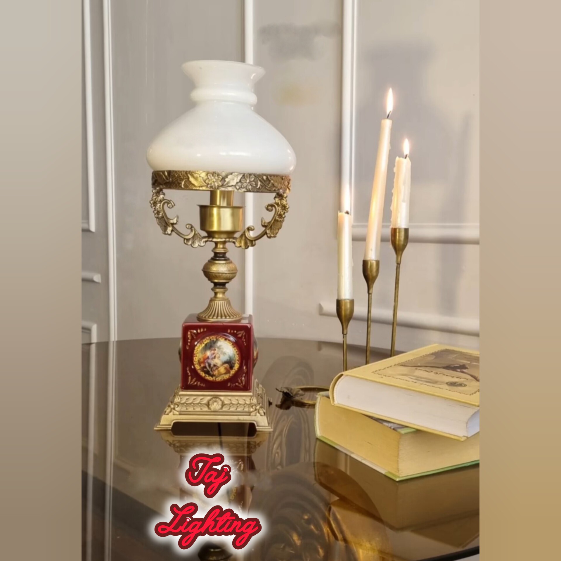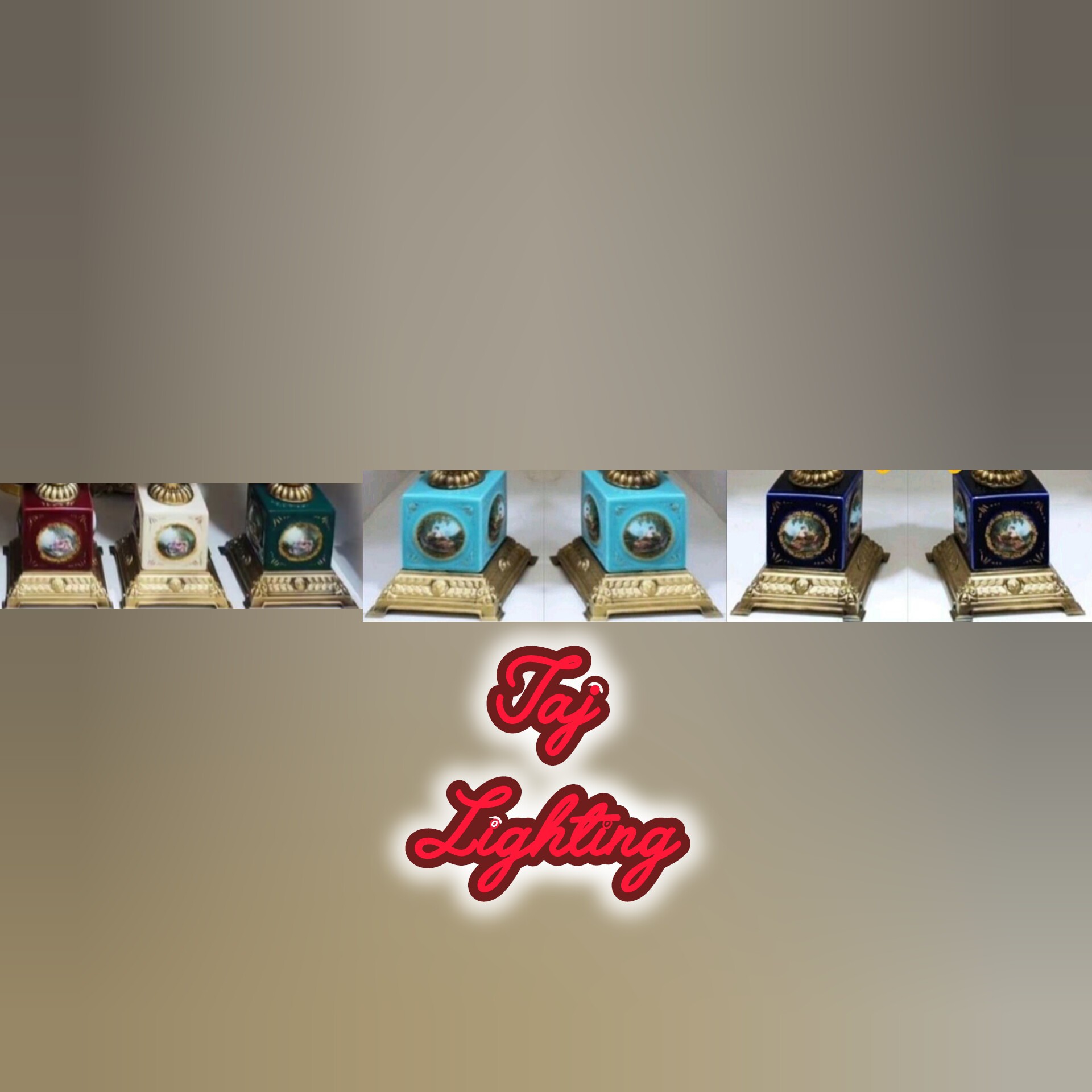 💥قیمت درج شده ، قیمت هر عدد چراغ می باشد جنس حباب : بلور رنگ حباب : سفید ساده / عسلی طرح گل جنس وسط تنه : چینی رنگبندی وسط تنه : سفید، زرشکی، سورمه ای ، فیروزه ای ، یشمی جنس پایه برنز با آبکاری آنتیک