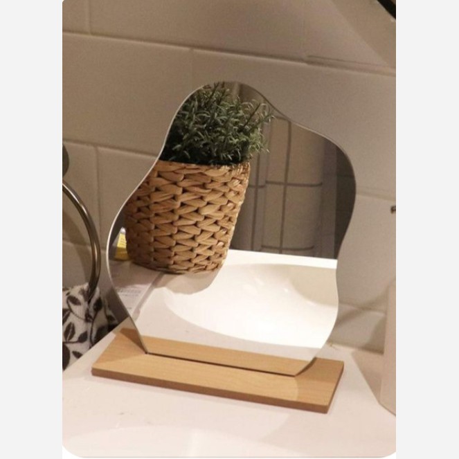 آینه رومیزی چوبی آینه دفرمه پایه چوبی آینه دفرمه کوچک رومیزی آینه هفت سین مبلمونسرا مدل 264443