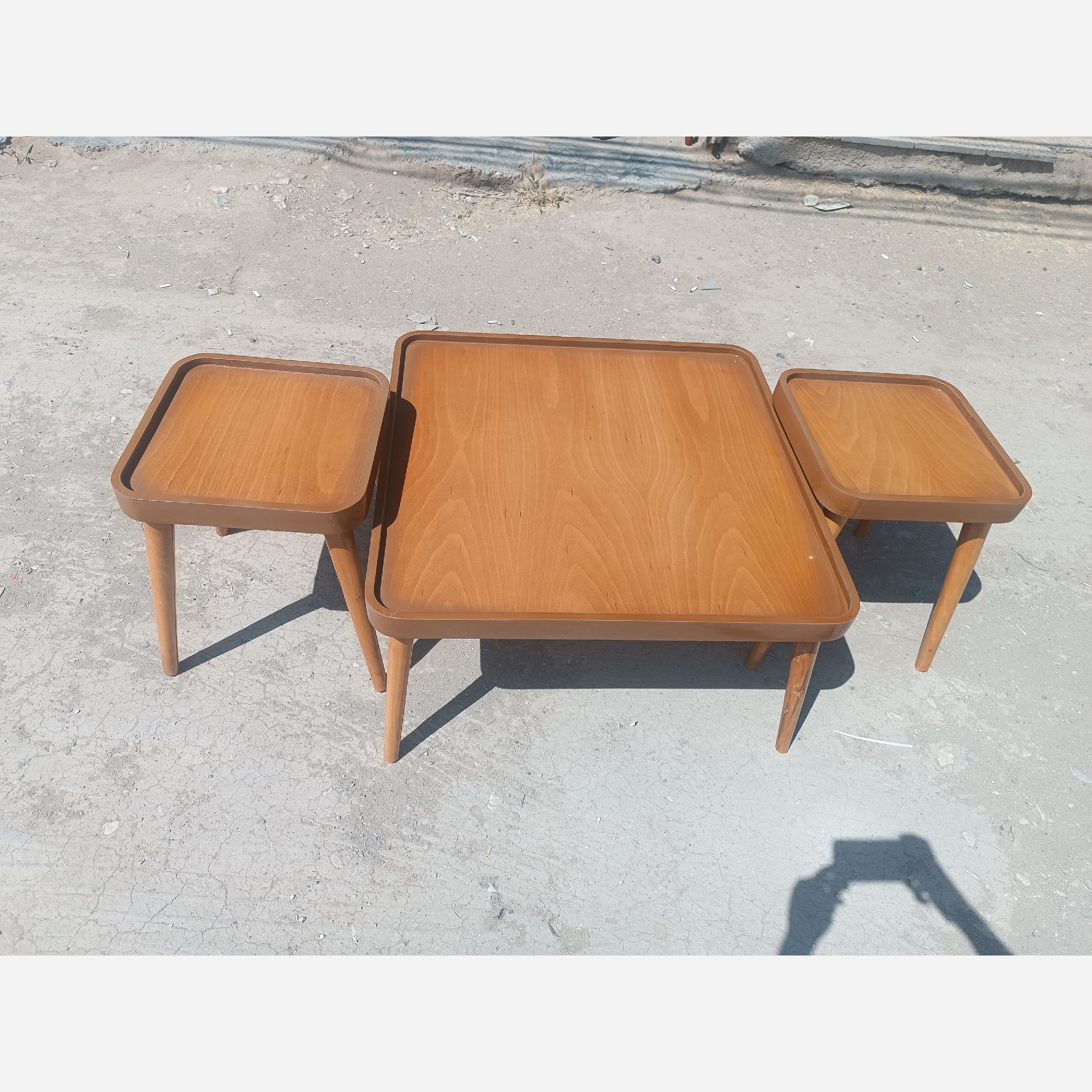میز سوبل مربع با 3عسلی چوب روس صفحه ام دی اف روکش چوب رنگ طبق عکس ارسالی