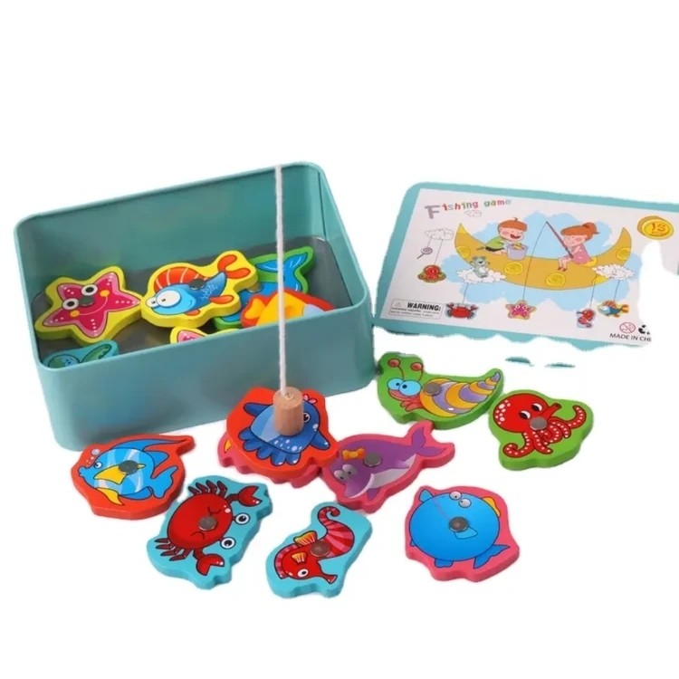اسباب بازی ماهیگیری چوبی مگنتی همراه جعبه فلزی مبلمونسرا مدل 258625