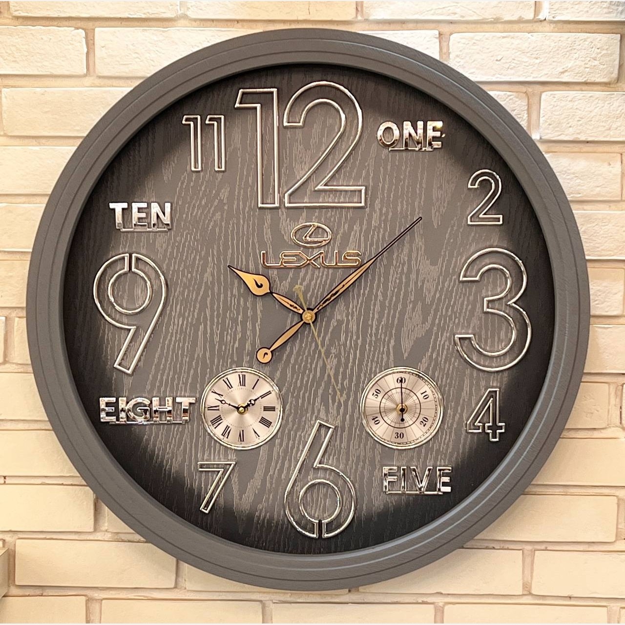 ساعت دیواری برند لکسوس فریم لاکی ابعاد 70 سانتی متر رنگ قهوه ای . سفید . طوسی . مشکی سه موتوره آرامگرد و بیصدا کیفیت عالی دارای ضمانت