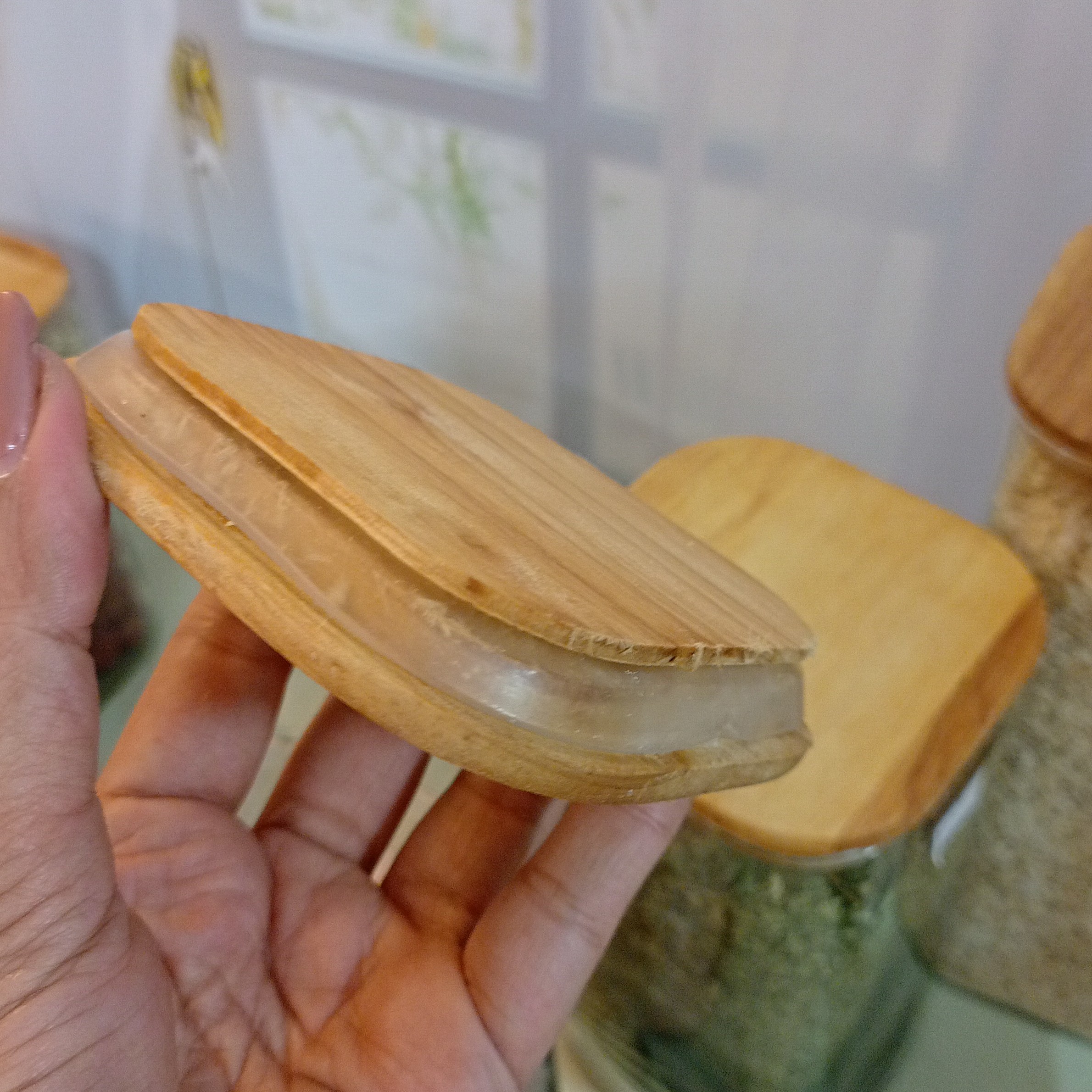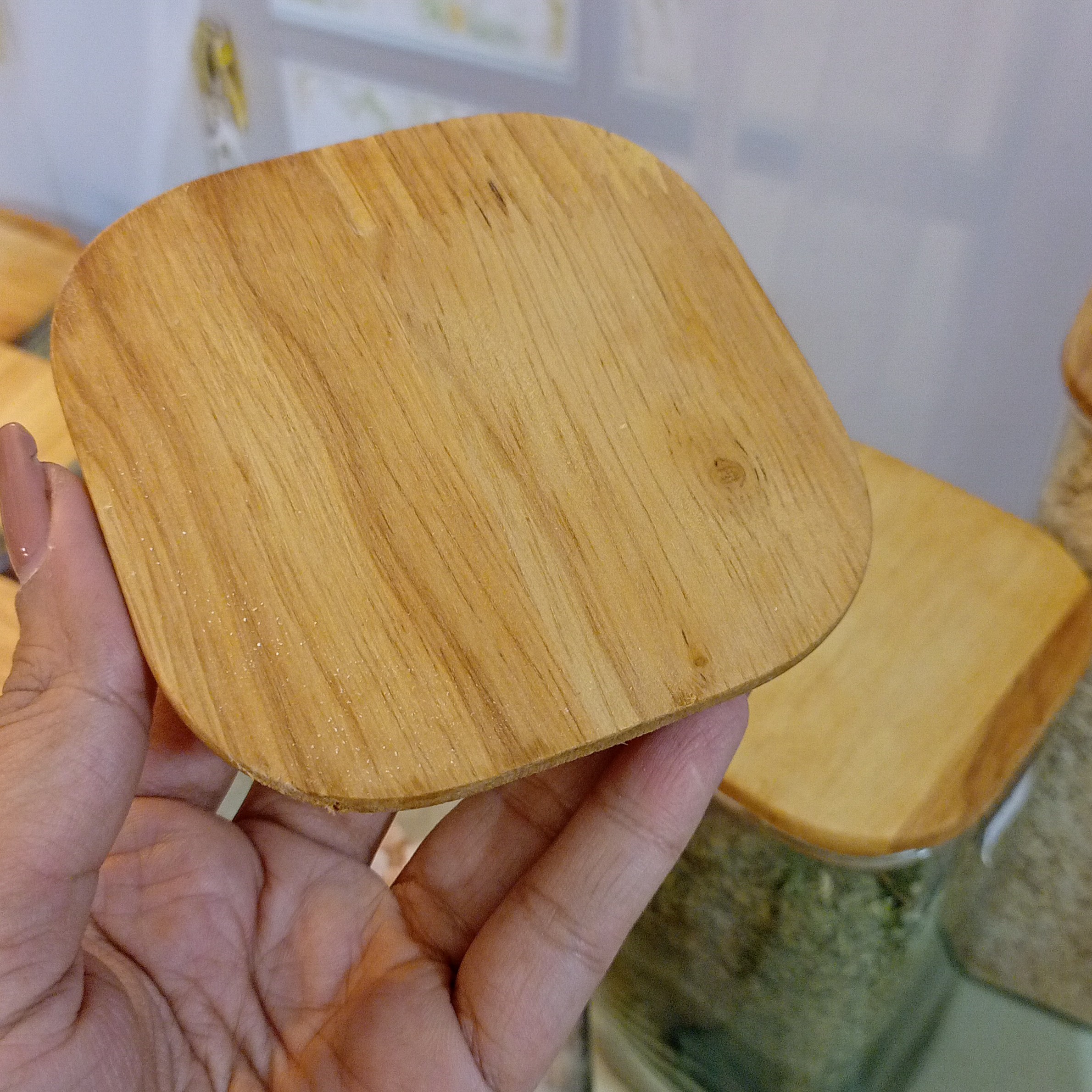 بانکه شیشه ای مربع در چوبی اوکیا سایز 6 ارتفاع 11 سانت درب چوبی مبلمونسرا مدل 287869