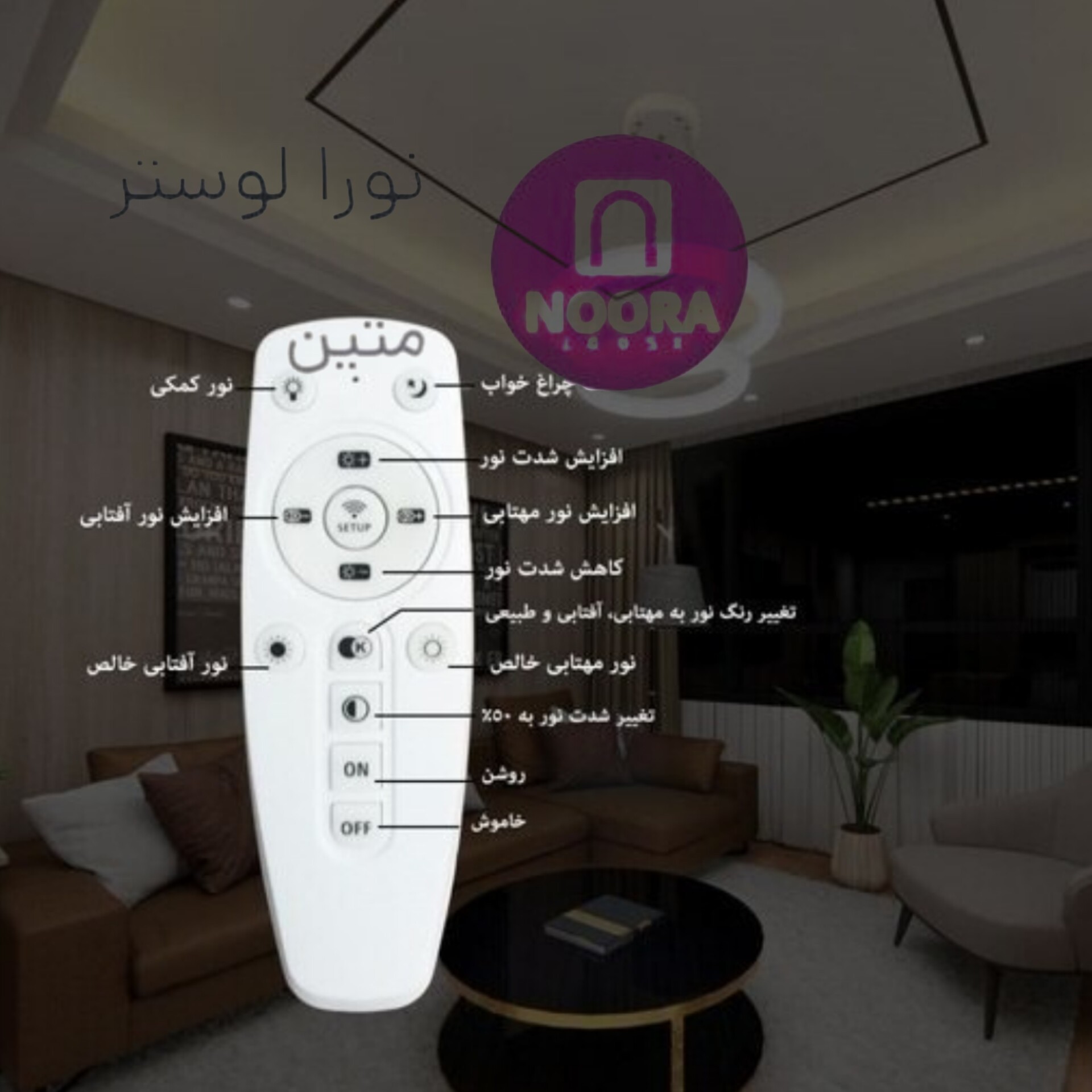 لوستر مدرن هشت حالت نوری دارای ریموت کنترل و اپلیکیشن موبایل مبلمونسرا مدل 244318