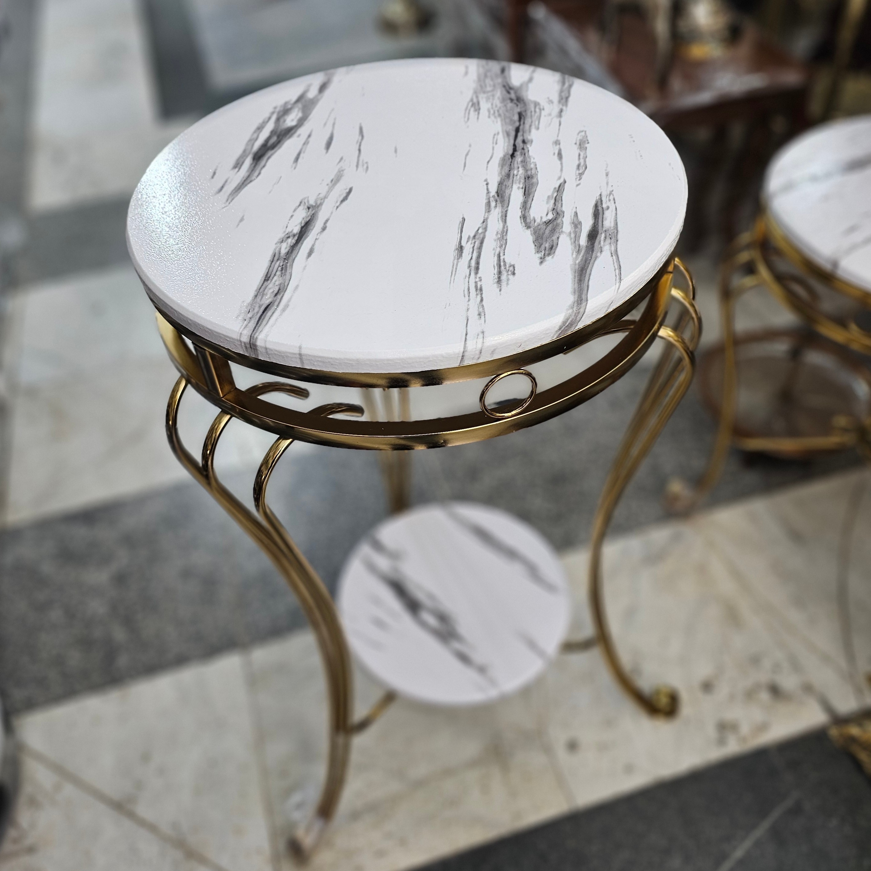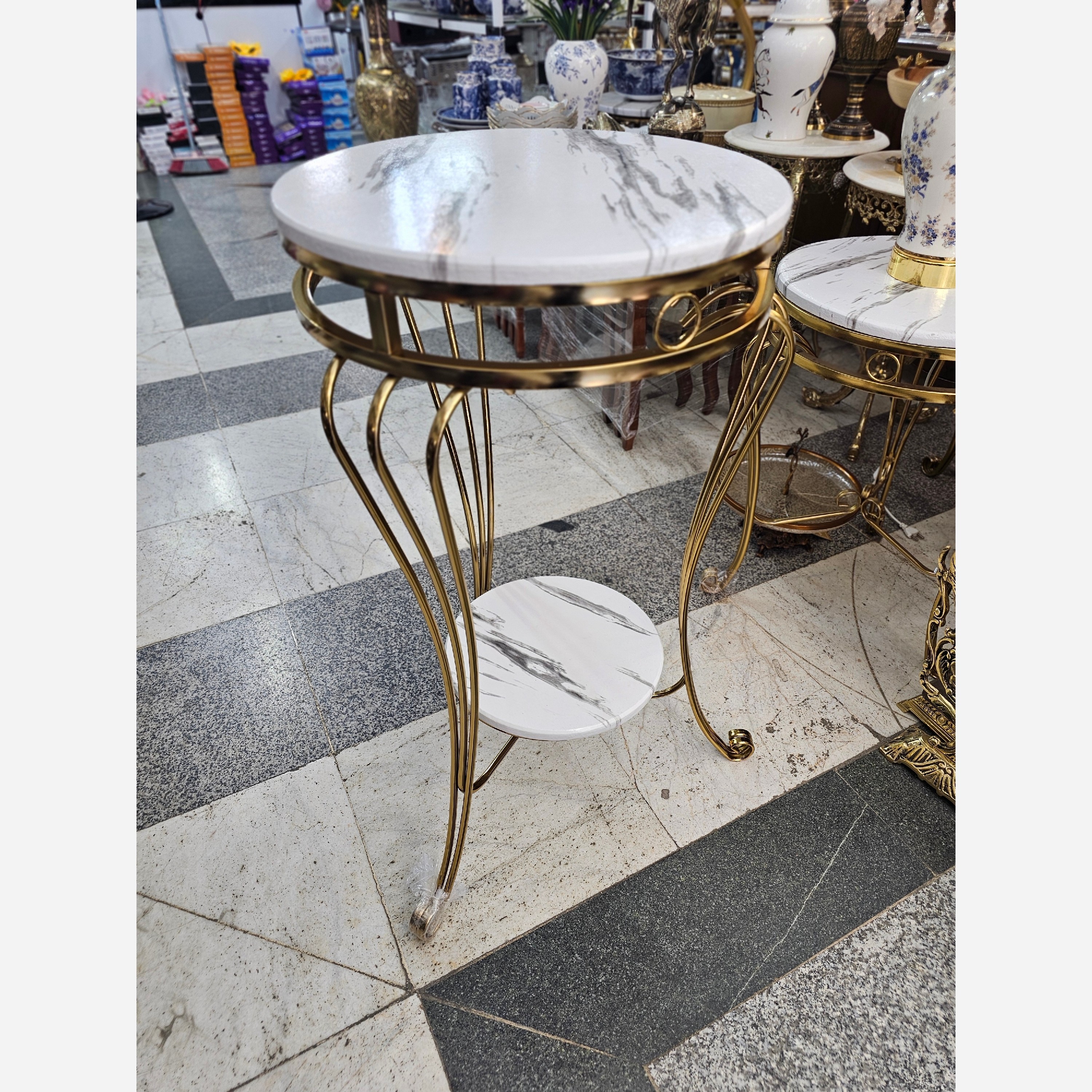 میز دو طبقه ارتفاع 97 ابکاری فورتیک طلایی رنگ ثابت رویه چوب طرح سنگ کیفیت عالی ارتفاع 60 موجوده با قیمت 1.700