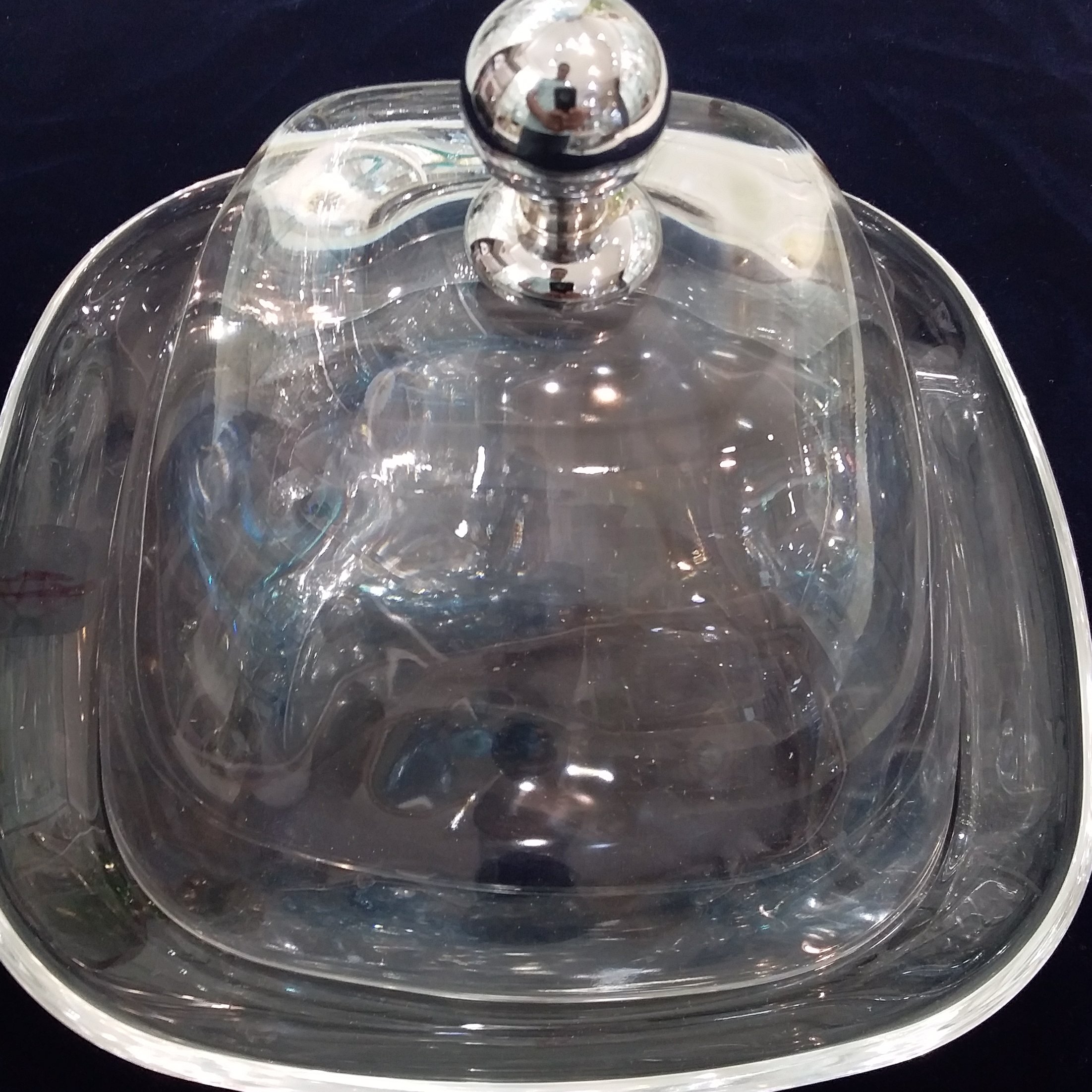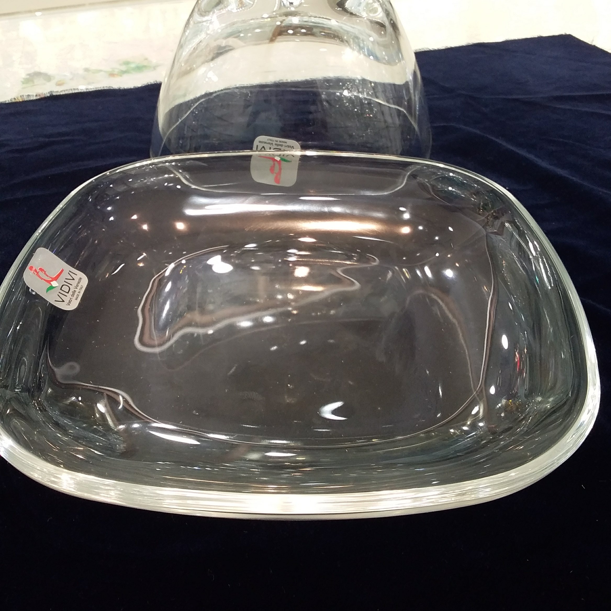 کره خوری بلور اصل ایتالیا برند وی دی وی شیک و زیبا با درب مناسب برای کیک و صبحانه ابعاد ظرف زیر 17 در 17 سانتی متر و ارتفاع کره خوری 10 سانتی متر می باشد