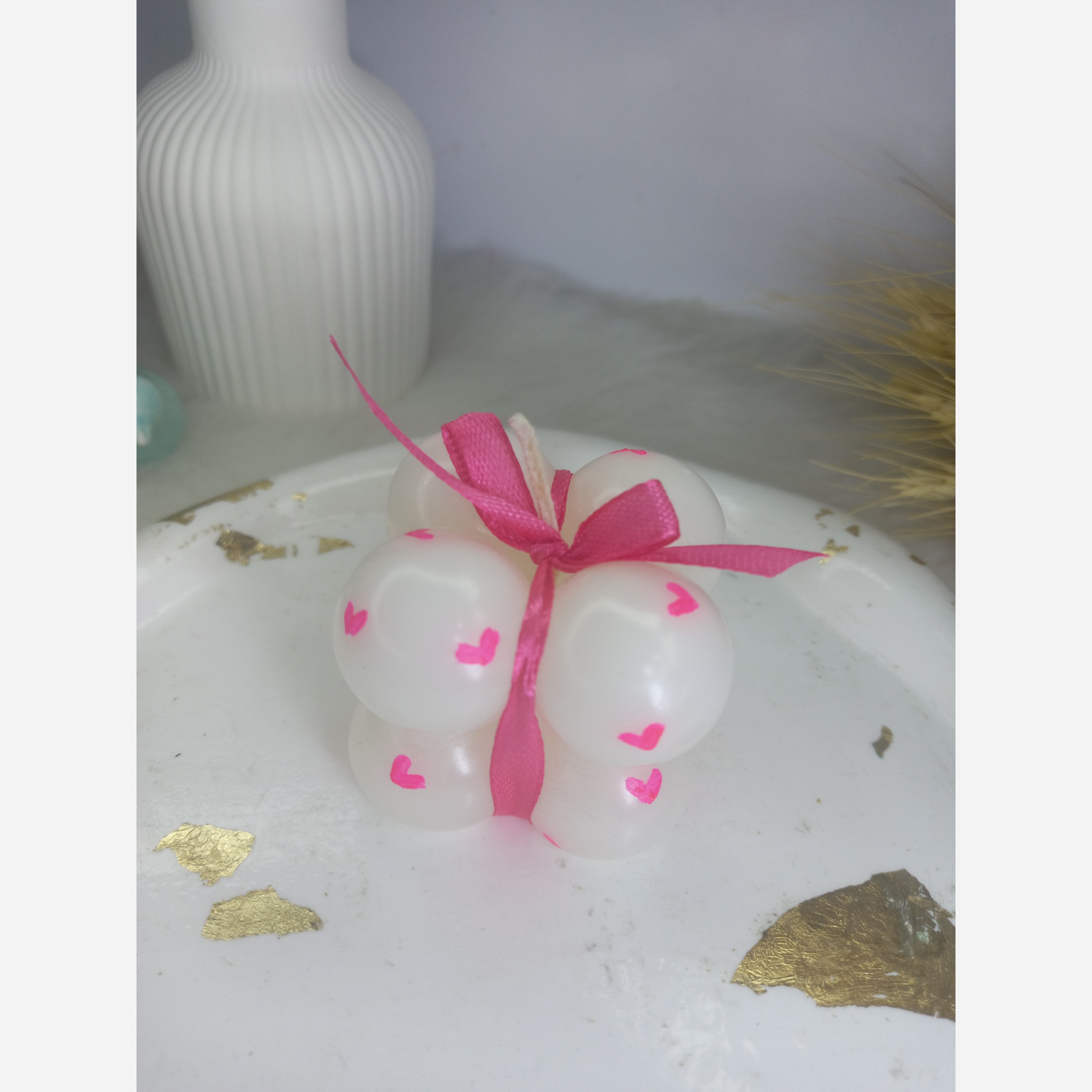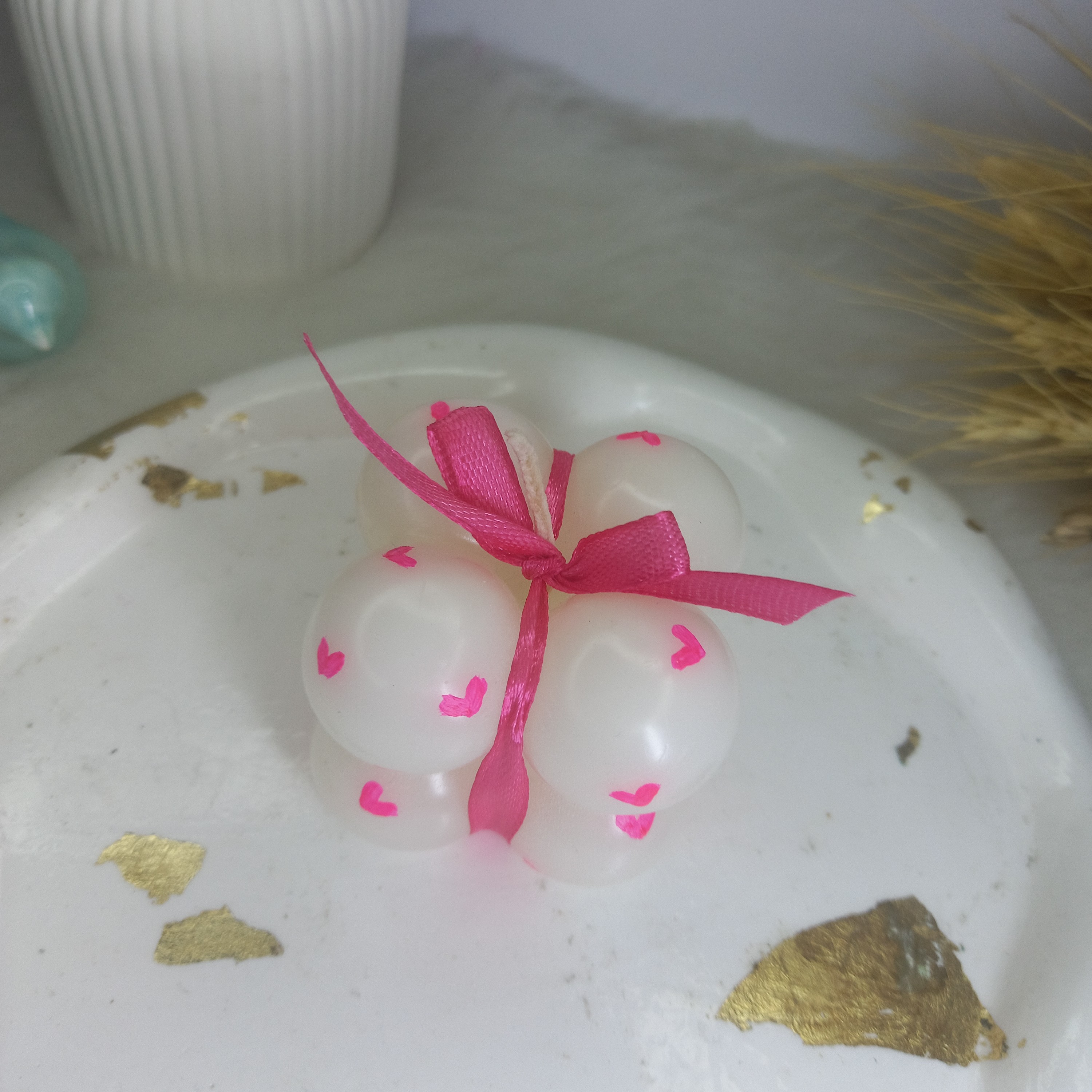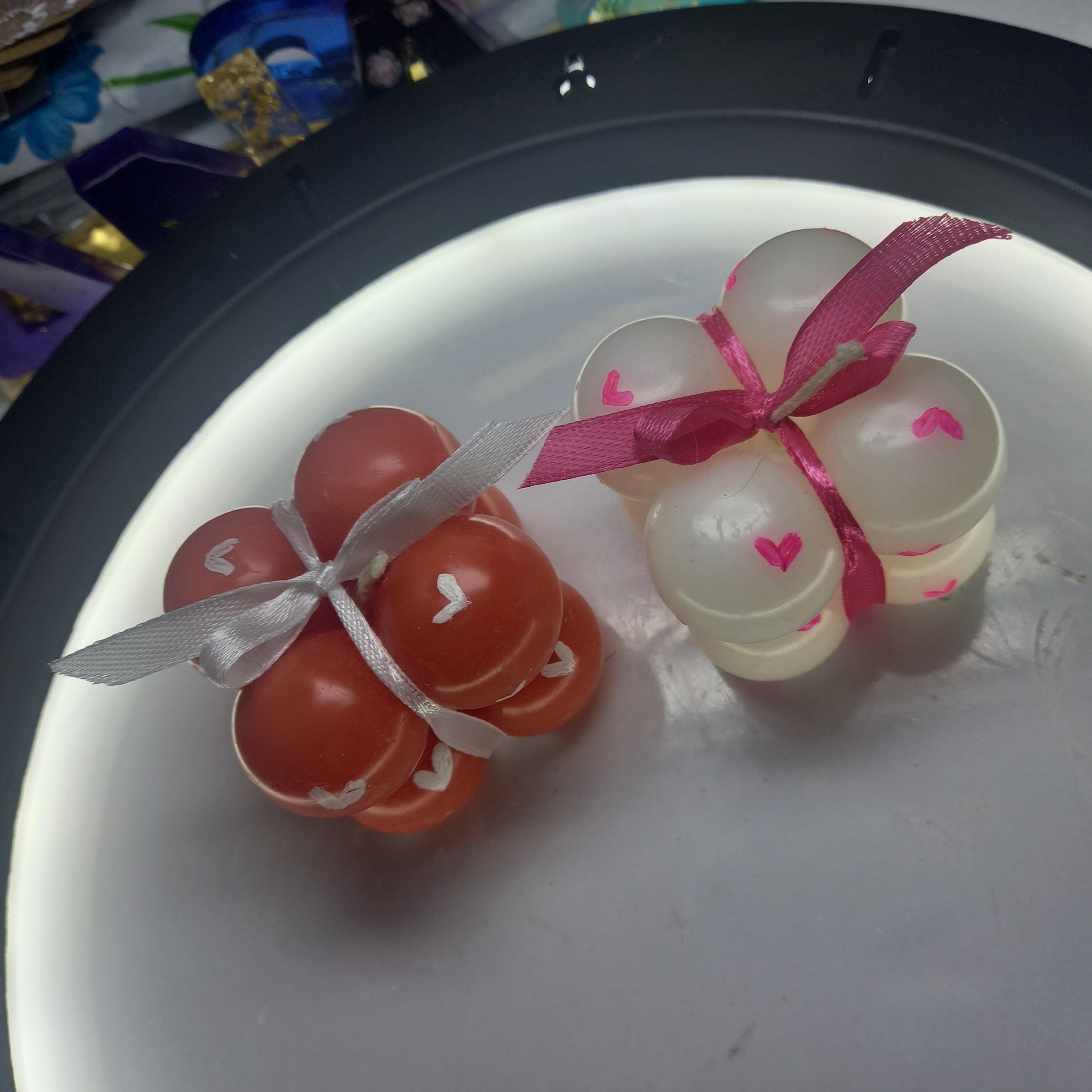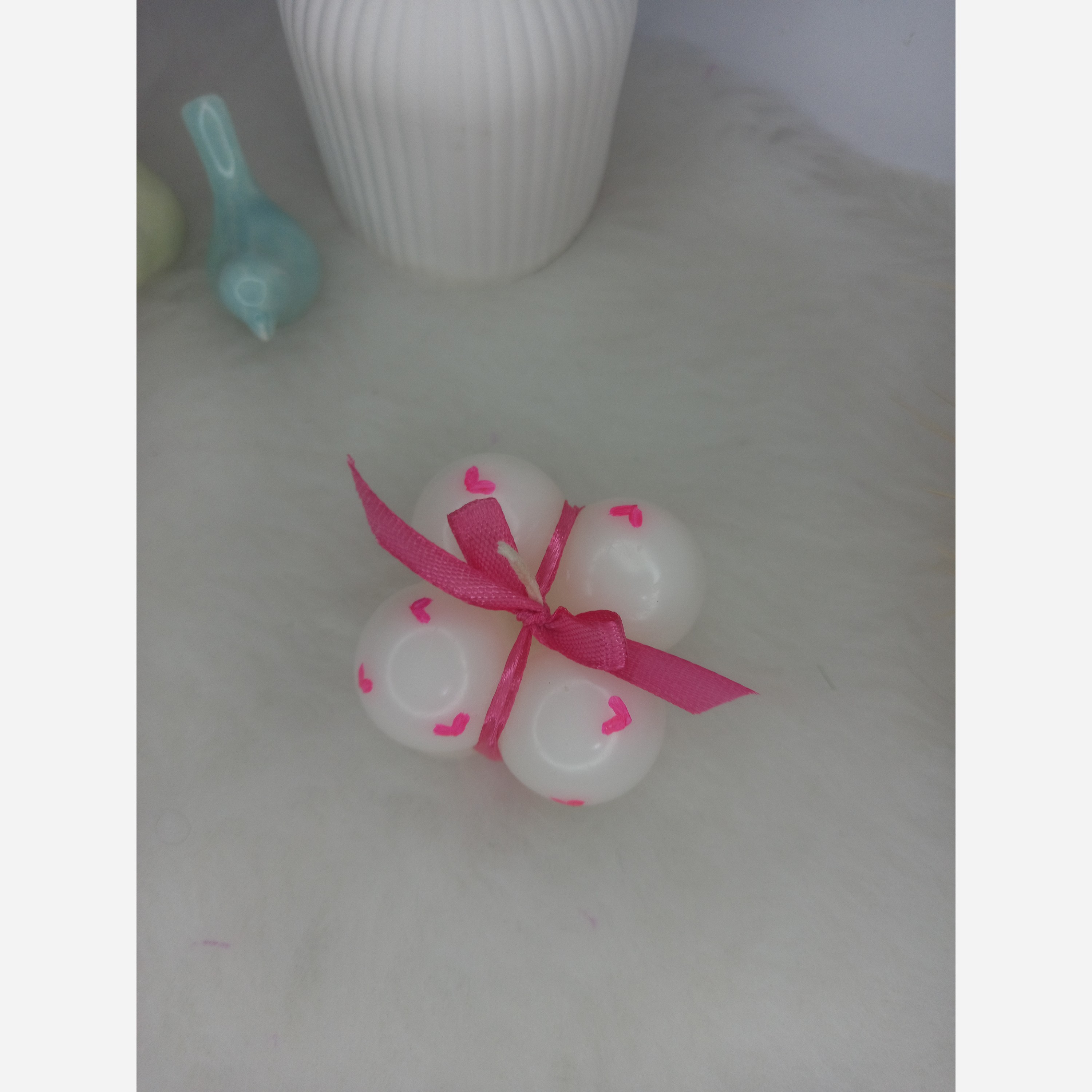 شمع روبیک چهارتایی قلبی با روبان مبلمونسرا مدل 282643