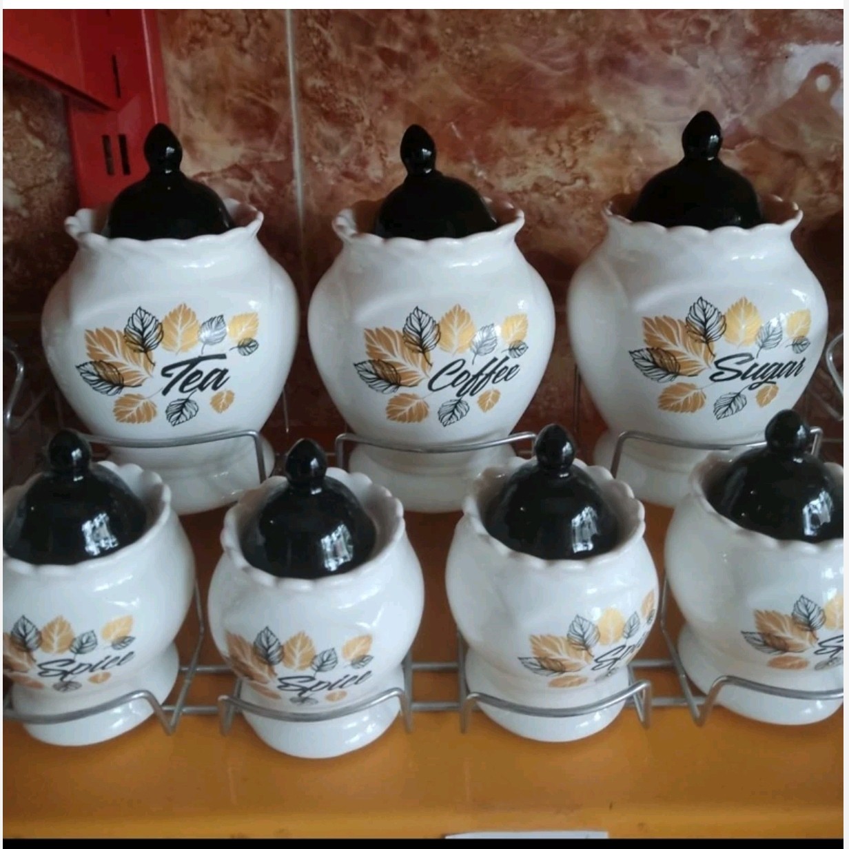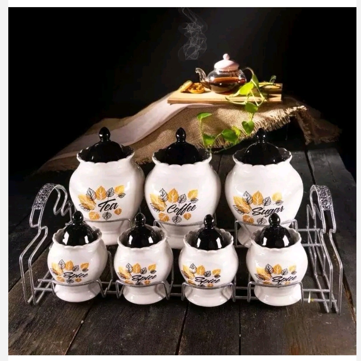 پاسماوری هفت پارچه چینی سرامیک درب مشکی به همراه استند فلز مبلمونسرا مدل 289368
