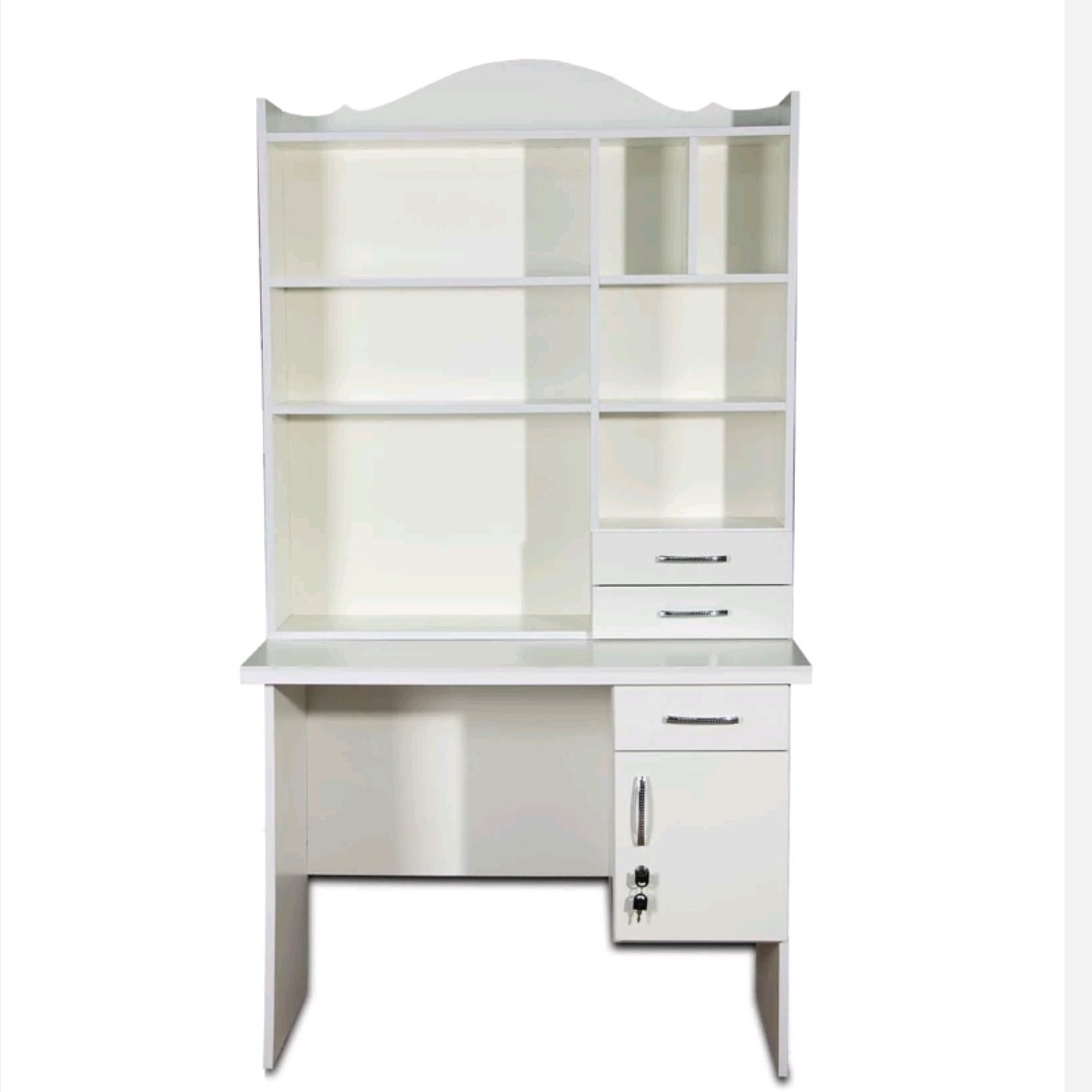 میز تحریر دارای دو قفسه کتابخانه دو عدد کشو روی میز و یک کشو + باکس قفل دار در پایین میز تحریر دارای نور مخفی که دیگه به چراغ مطالعه نیاز ندلشته باشید دو تیکه برای حمل آسان