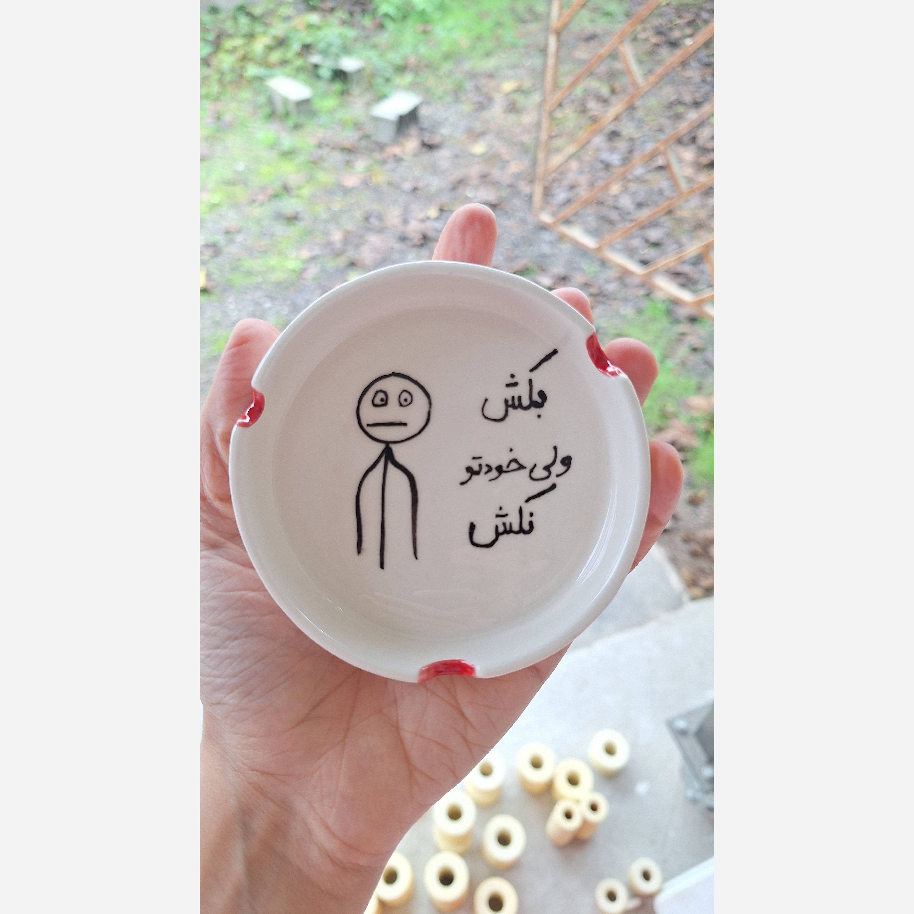زیر سیگاری با نوشته زیر لعابی اصلا پاک نمیشه..قابل شستشو هست برای متن مورد نظرتون حتما پیام بدید در غیر اینصورت بصورت رندوم ارسال میشه .. سفارش عمده هم میپذیریم..قبلش پیام بدید .
