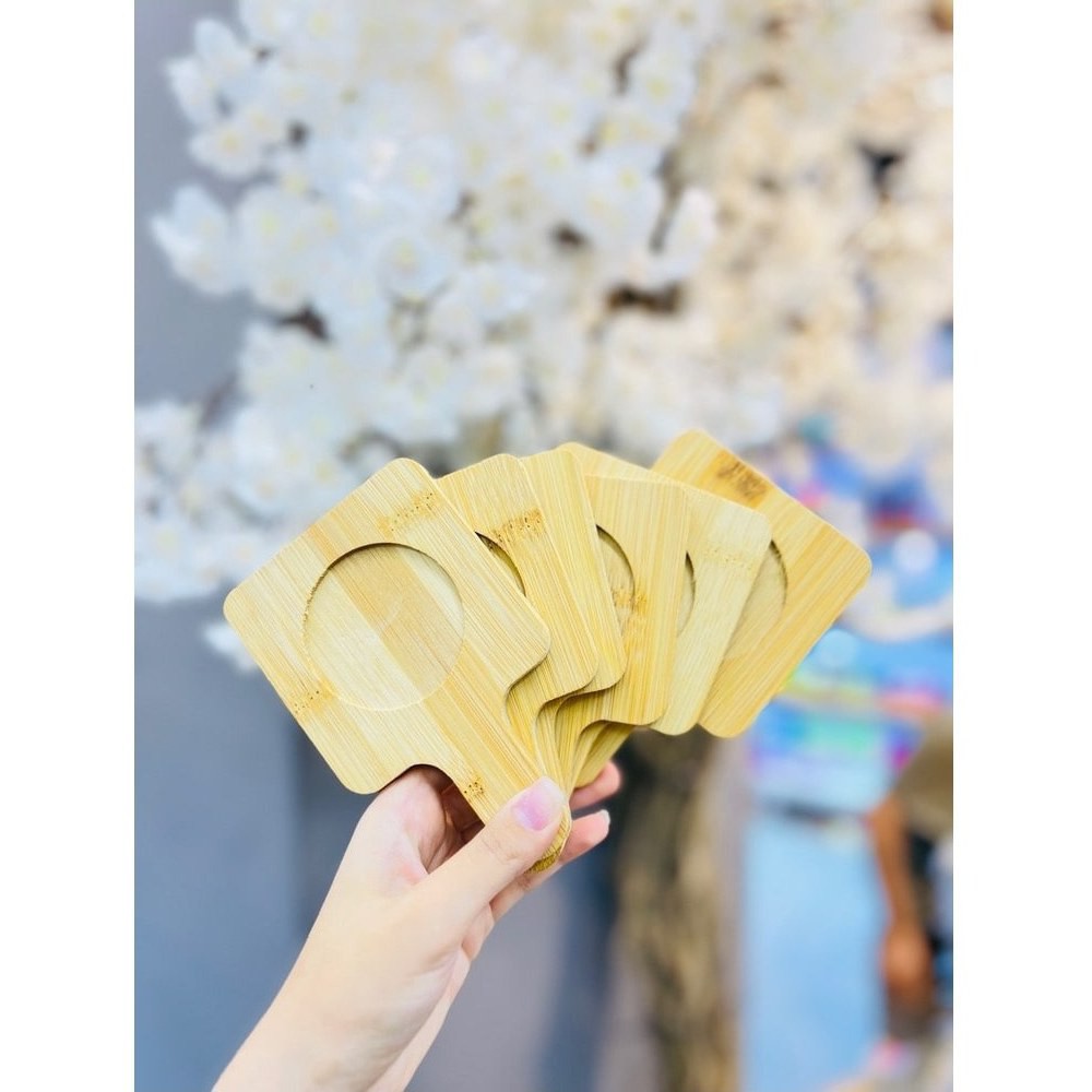 زیر لیوانی دسته راکتی چوبی تمام بامبو بسته شش عددی مبلمونسرا مدل 301198