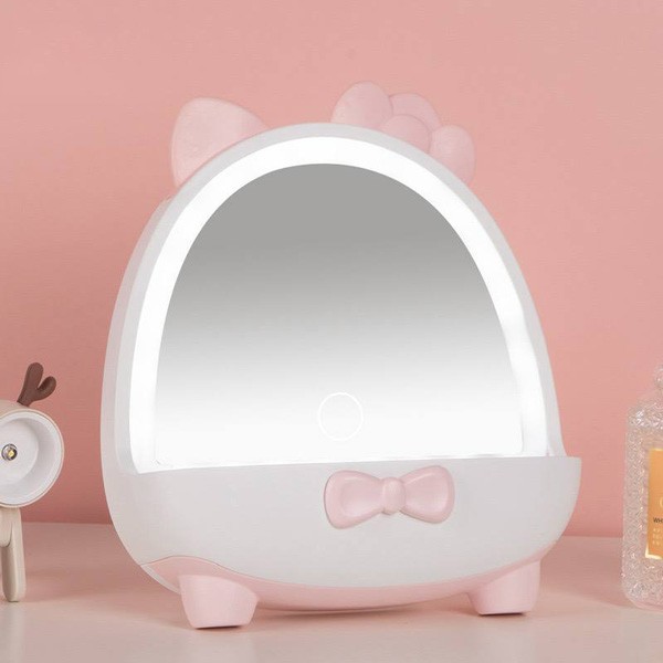 آینه و جا جواهری ال ای دار دار شارژی طرح کیتی دارای محفظه اکسسوری ابعاد:18.5*5.2*15.6 سانتی متر لطفا قبل از سفارش محصول، موجودی را با غرفه دار چک کنید.