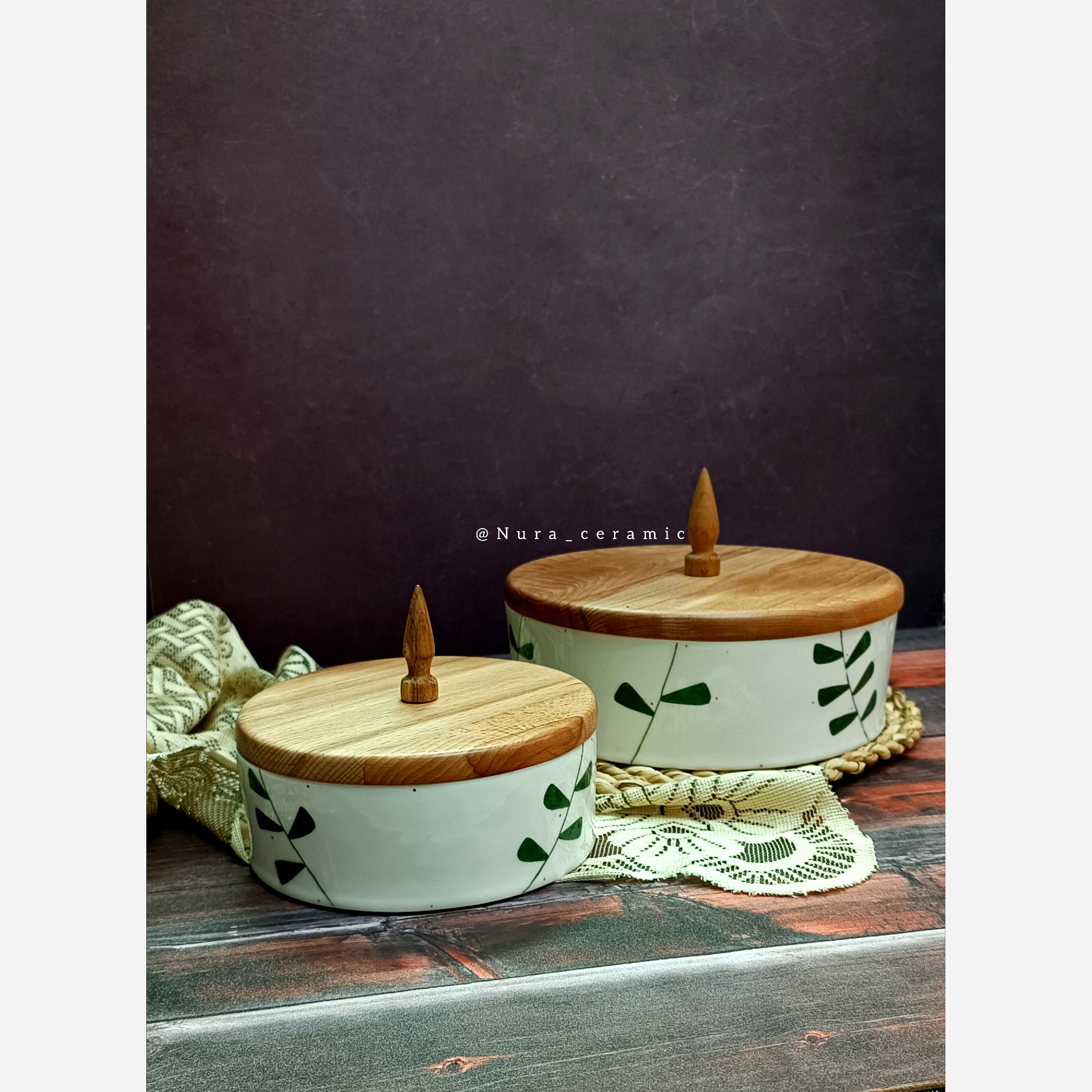 بیسکوییت و آجیل خوری سرامیکی درب چوبی برگ سبز مبلمونسرا مدل 265356