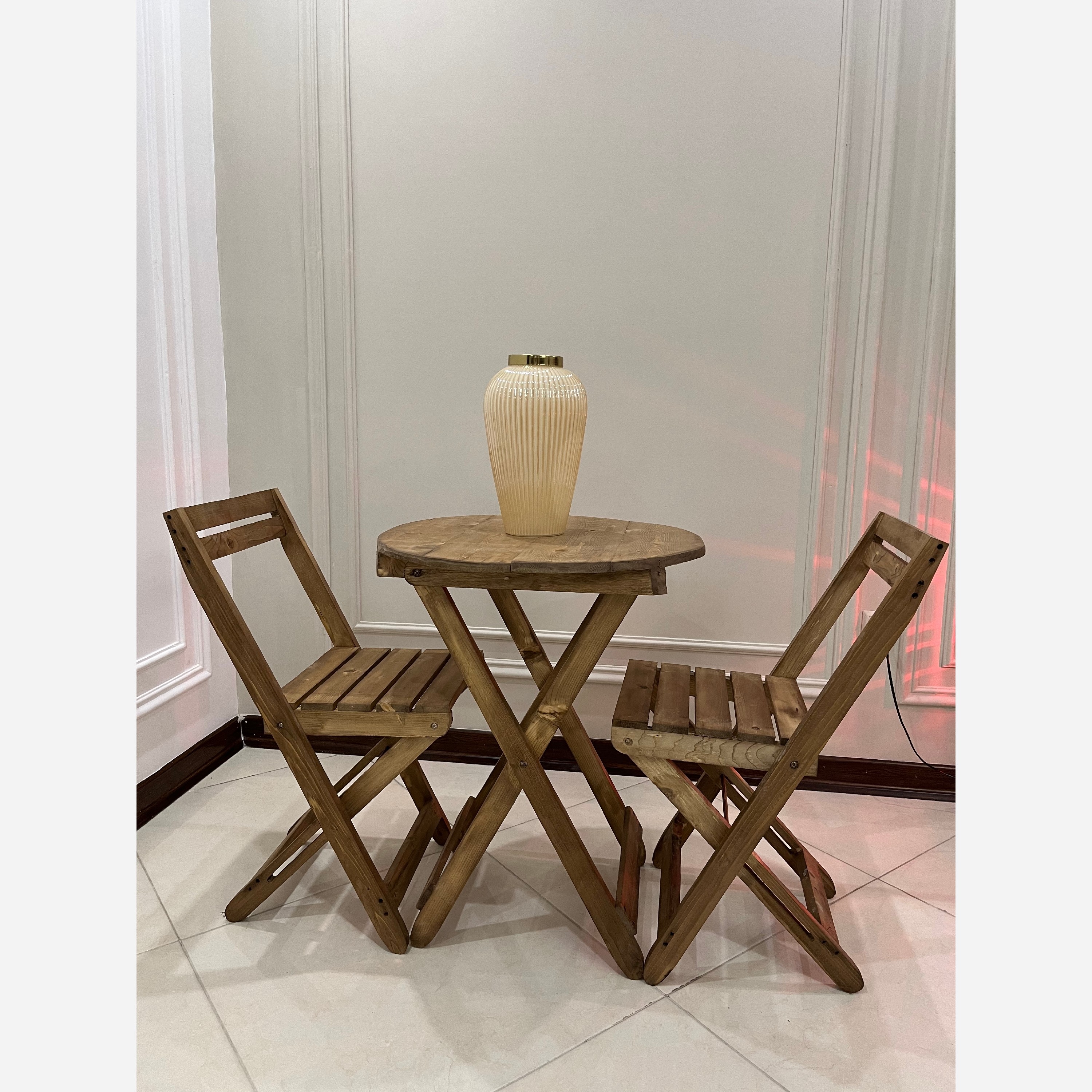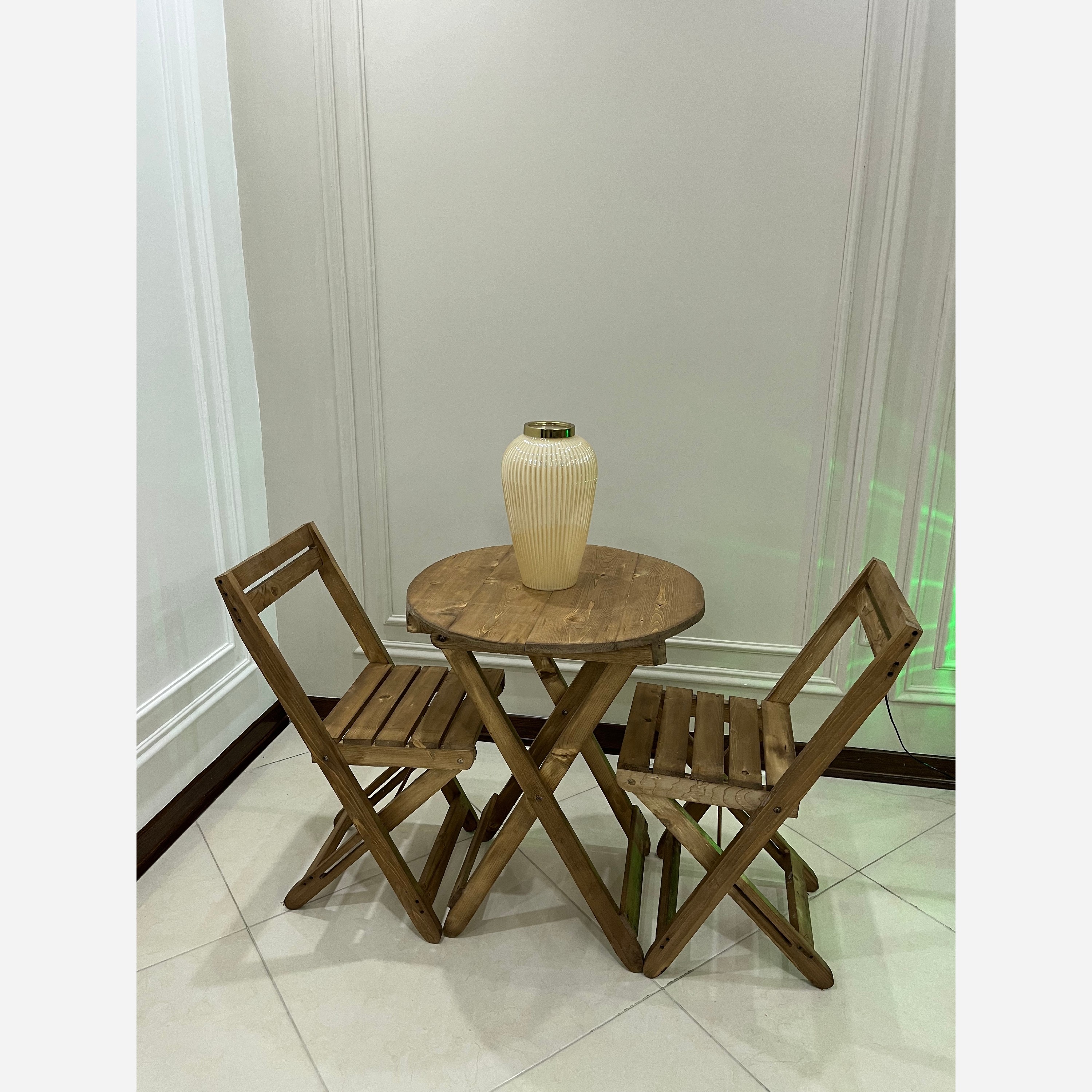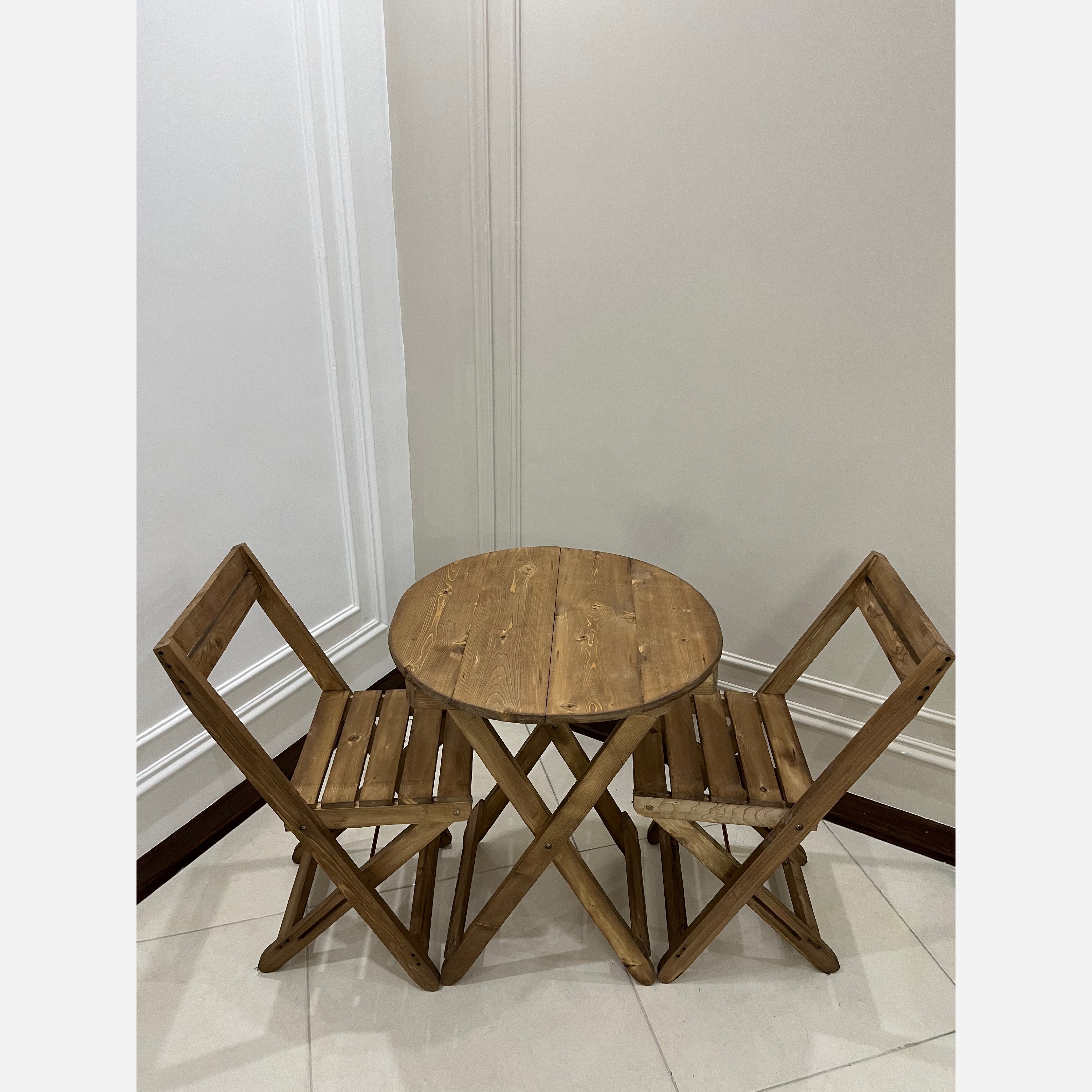 قیمت برای یک دست میز و 2عددصندلی میباشد ساخته شده از چوب مرغوب روسی تحمل وزن تا 110کیلو کاملا تاشو، مناسب مسافرت، منازل، کافه، و... ارسال درب منزل حس ناب چوب