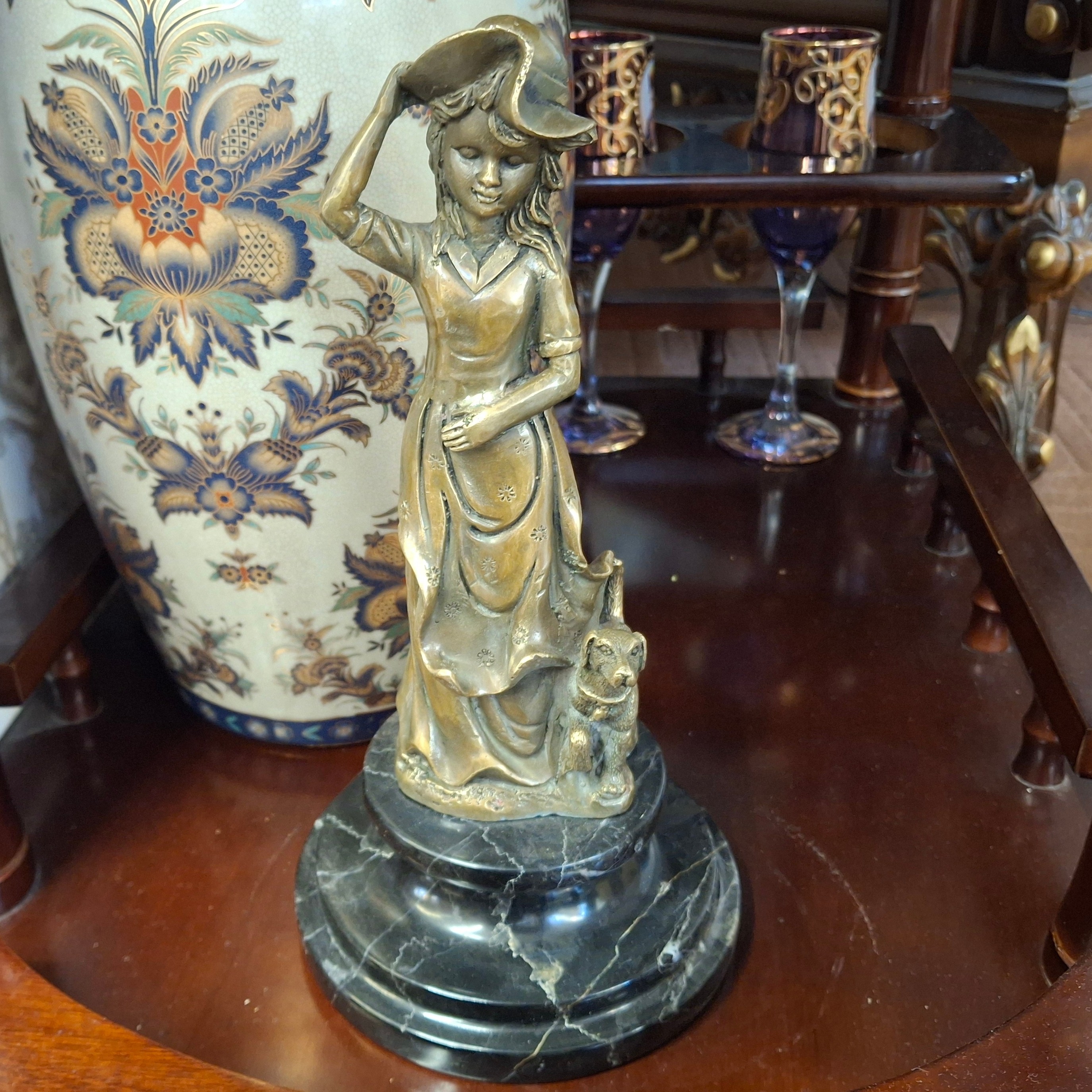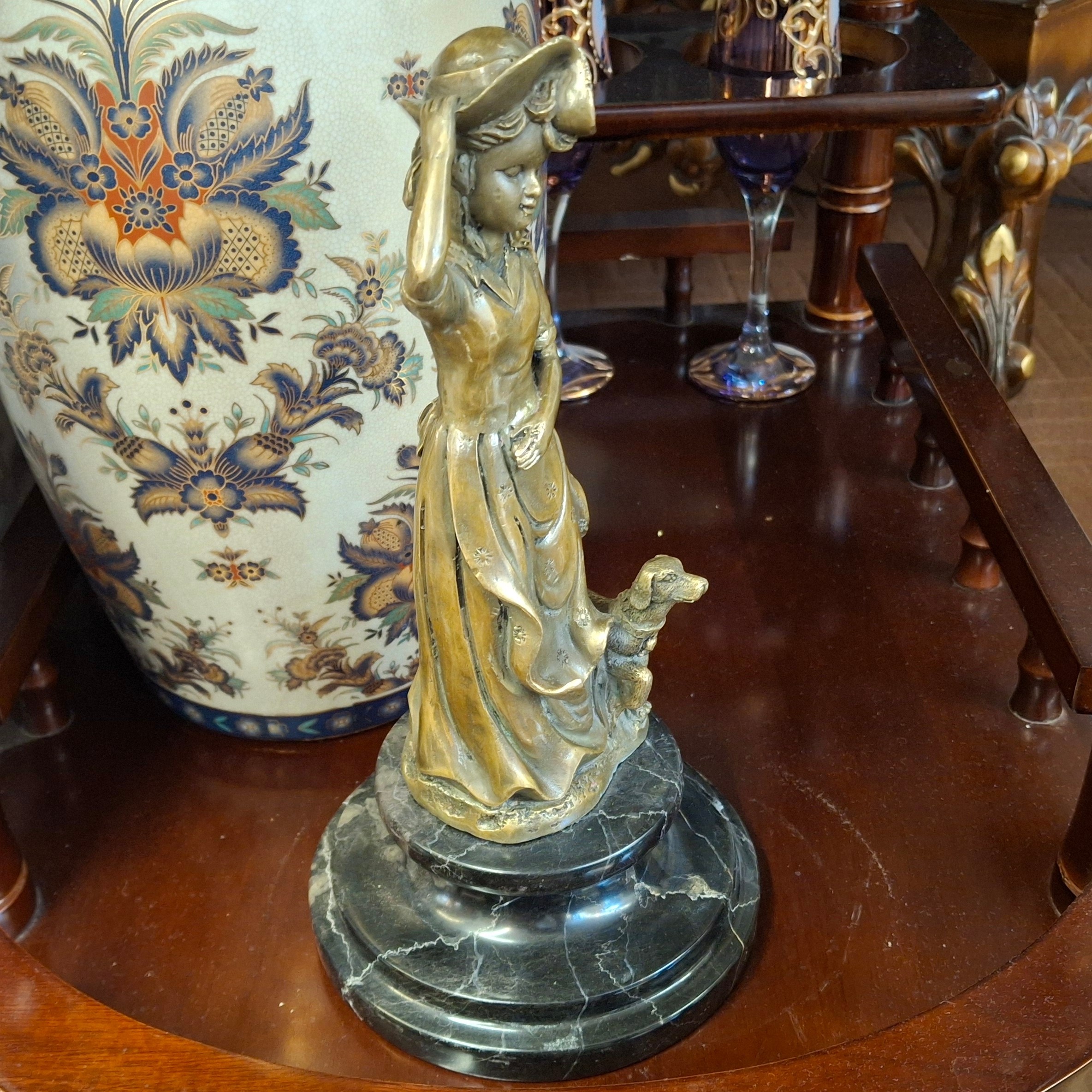 مجسمه برنز وارداتی دختر و سگ 25 سانتی بسیار زیبا و جذاب دو فیگوره وزن تقریبی است با قیمت بسیار مناسب و ارسال رایگان