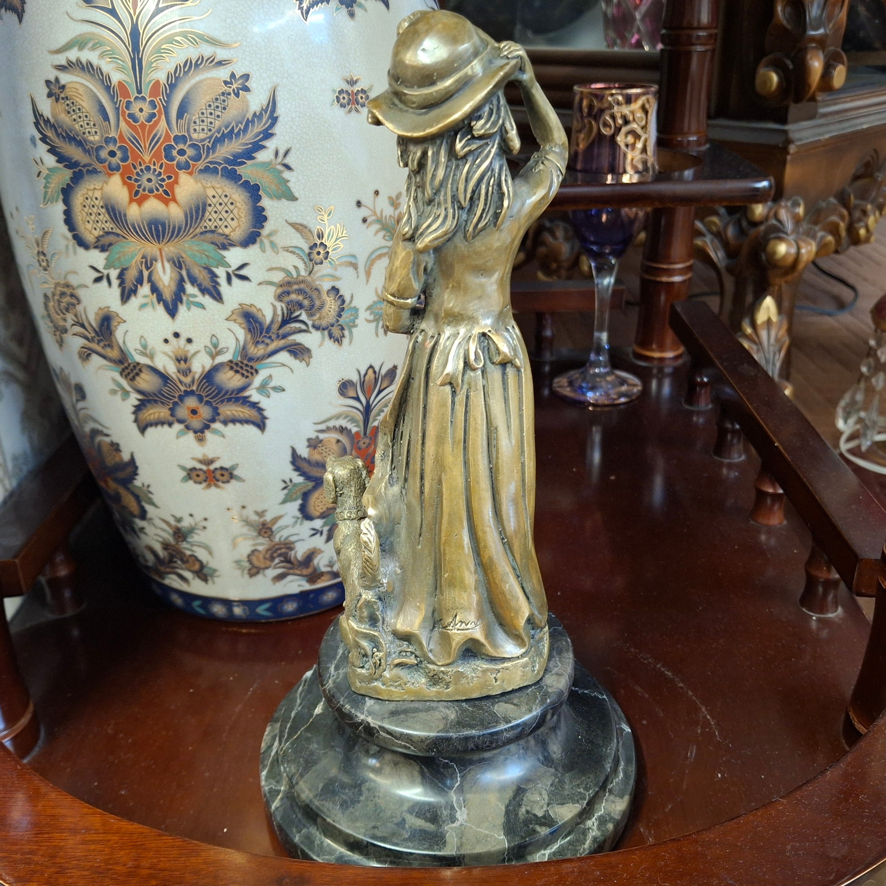 مجسمه برنز وارداتی دختر و سگ امضادار مبلمونسرا مدل 253752